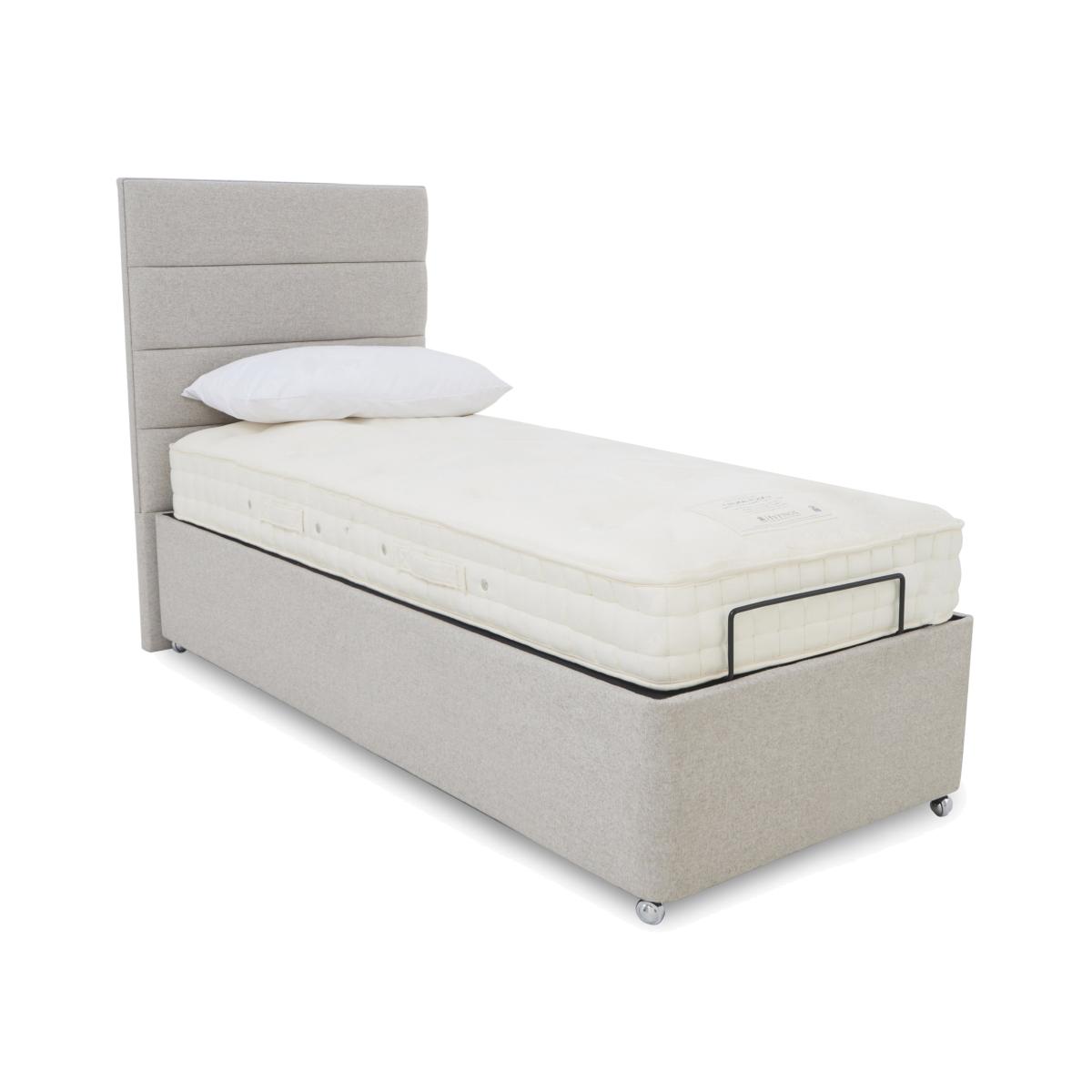 Transform the way you sleep and elevate your bedroom style with an adjustable divan bed base from our Natsu range. Complete with luxuriously cushioned headboards with modern horizontal fluting, the look is simply sumptuous and with multi-position electric-powered adjustability the level of comfort is just as impressive. They’re also perfect for anyone who needs a little extra help getting in and out of bed. As well as dual adjustable bases and optional massage functionality, these divan bases also offer optional storage drawers and large ottoman compartments. Designed and handcrafted exclusively for Furniture Village, the Natsu range is part of our E-Motion adjustable bed collection. Adjustable comfort, practicality and style – in one. This stunning adjustable ottoman divan base comes completes our sophisticated Natsu headboard. Only at Furniture Village. Why you'll love it Find perfect comfort for better sleep with this adjustable ottoman divan base. Comes complete with our sophisticated Natsu headboard with stylish horizontal stitching. And you’ll love the roomy hidden storage compartment. A simple wireless handset makes this bed so easy to adjust. Use the handy memory function to quickly return to your favourite comfort position. There’s even a weightless-feel pre-set position for TV watching. This divan base promotes restorative sleep by minimising discomfort that might wake you up. Adjustable beds can also reduce back ache, improve blood circulation and reduce snoring. It’s ideal if you need a little help getting in and out of bed. An ethical choice – this ottoman divan base is made with FSC-sourced wood. In a wide selection of fashionable upholstery fabric options. Designed and handcrafted just for Furniture Village. Made in the UK. Also available with 2-person adjustability and massage function. This adjustable ottoman divan base is part of our E-Motion range. What you need to know Mattress sold separately. To ensure bed base and mattress compatibility, consider a mattress from the E-Motion range. Please check the suitability of any mattress you are considering for this adjustable base. Available in single and king sizes. This ottoman divan base opens at the end. Maximum mattress weight is 40 kg for the single ottoman base and 80 kg for the king ottoman base. Please keep hands clear of the mechanism when opening and closing the ottoman. Do not sit on this adjustable bed with the foot end in a raised position. Clean regularly using a soft brush or vacuum with the curtain attachment. Deal with any spills promptly. Professional cleaning advised for oil- and grease-based stains. Some fabrics can show wear on areas of more use or in direct sunlight. Shop our E-Motion range for a huge choice of bed frames, divan bases, massage beds, mattresses and more.