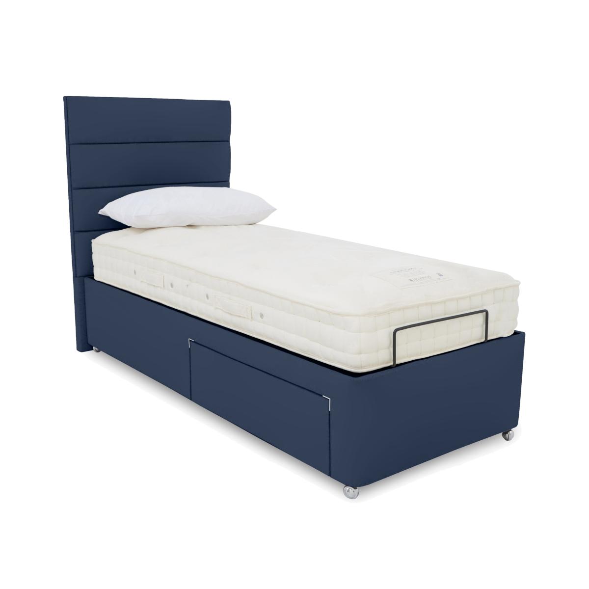 Transform the way you sleep and elevate your bedroom style with an adjustable divan bed base from our Natsu range. Complete with luxuriously cushioned headboards with modern horizontal fluting, the look is simply sumptuous and with multi-position electric-powered adjustability the level of comfort is just as impressive. They’re also perfect for anyone who needs a little extra help getting in and out of bed. As well as dual adjustable bases and optional massage functionality, these divan bases also offer optional storage drawers and large ottoman compartments. Designed and handcrafted exclusively for Furniture Village, the Natsu range is part of our E-Motion adjustable bed collection. Style meets incredible comfort in this adjustable divan base with dual control for individual comfort, massage feature and sophisticated headboard. Only at Furniture Village. Why you'll love it Find perfect comfort for better sleep with this dual-adjustable divan base with massage function. Comes complete with our sophisticated Natsu headboard with stylish horizontal stitching. Multi-setting massage function provides soothing relief for aching joints. Dual base is electric powered for smooth and efficient movement. With 2 separate bed bases, you and your partner have individual control. A simple wireless handset makes this bed so easy to adjust. Use the handy memory function to quickly return to your favourite comfort position. There’s even a weightless-feel pre-set position for TV watching. This divan base promotes restorative sleep by minimising discomfort that might wake you up. Adjustable beds can also reduce back ache, improve blood circulation and reduce snoring. It’s ideal if you need a little help getting in and out of bed. An ethical choice – this divan base is made with FSC-sourced wood. With optional storage drawers in a range of configurations. In a wide selection of fashionable upholstery fabric options. Designed and handcrafted just for Furniture Village. Made in the UK. This dual-adjustable massage divan base is part of our E-Motion range. What you need to know Mattress sold separately. To ensure bed base and mattress compatibility, consider a mattress from the E-Motion range. Please check the suitability of any mattress you are considering for this adjustable base. In king and super king sizes with dual control. Also available in single size. Do not sit on this adjustable bed with the foot end in a raised position. Clean regularly using a soft brush or vacuum with the curtain attachment. Deal with any spills promptly. Professional cleaning advised for oil- and grease-based stains. Some fabrics can show wear on areas of more use or in direct sunlight. Shop our E-Motion range for a huge choice of bed frames, divan bases, massage beds, mattresses and more.