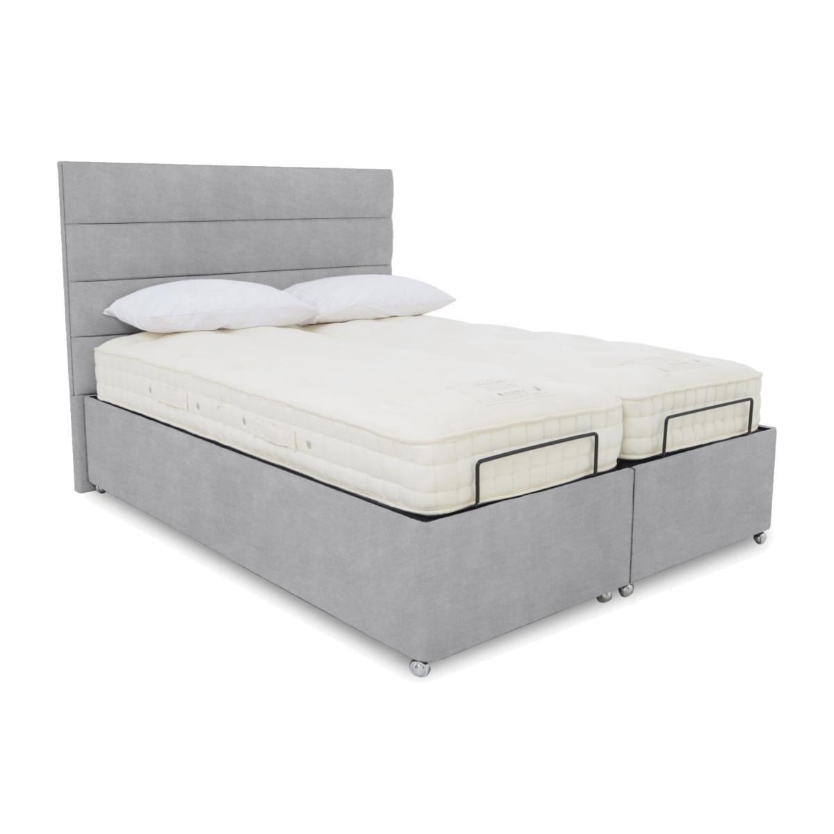 Transform the way you sleep and elevate your bedroom style with an adjustable divan bed base from our Natsu range. Complete with luxuriously cushioned headboards with modern horizontal fluting, the look is simply sumptuous and with multi-position electric-powered adjustability the level of comfort is just as impressive. They’re also perfect for anyone who needs a little extra help getting in and out of bed. As well as dual adjustable bases and optional massage functionality, these divan bases also offer optional storage drawers and large ottoman compartments. Designed and handcrafted exclusively for Furniture Village, the Natsu range is part of our E-Motion adjustable bed collection. Adjustable comfort meets ottoman storage meets sophisticated style in this beautiful adjustable divan base with dual control. Comes complete with headboard. Why you'll love it Find perfect comfort for better sleep with this dual-adjustable ottoman divan base. Comes complete with our sophisticated Natsu headboard with stylish horizontal stitching. And you’ll love the roomy hidden storage compartment. Dual base is electric powered for smooth and efficient movement. With 2 separate bed bases, you and your partner have individual control. A simple wireless handset makes this bed so easy to adjust. Use the handy memory function to quickly return to your favourite comfort position. There’s even a weightless-feel pre-set position for TV watching. This divan base promotes restorative sleep by minimising discomfort that might wake you up. Adjustable beds can also reduce back ache, improve blood circulation and reduce snoring. It’s ideal if you need a little help getting in and out of bed. An ethical choice – this ottoman divan base is made with FSC-sourced wood. In a wide selection of fashionable upholstery fabric options. Designed and handcrafted just for Furniture Village. Made in the UK. Also available with ultra-relaxing massage feature. This dual-adjustable ottoman divan base is part of our E-Motion range. What you need to know Mattress sold separately. To ensure bed base and mattress compatibility, consider a mattress from the E-Motion range. Please check the suitability of any mattress you are considering for this adjustable base. Available in king and super king sizes. This ottoman divan base opens at the end. Maximum mattress weight is 80 kg. Please keep hands clear of the mechanism when opening and closing the ottoman. Do not sit on this adjustable bed with the foot end in a raised position. Clean regularly using a soft brush or vacuum with the curtain attachment. Deal with any spills promptly. Professional cleaning advised for oil- and grease-based stains. Some fabrics can show wear on areas of more use or in direct sunlight. Shop our E-Motion range for a huge choice of bed frames, divan bases, massage beds, mattresses and more.