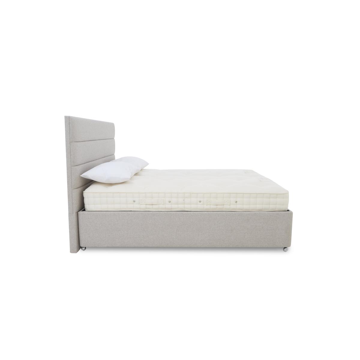 Transform the way you sleep and elevate your bedroom style with an adjustable divan bed base from our Natsu range. Complete with luxuriously cushioned headboards with modern horizontal fluting, the look is simply sumptuous and with multi-position electric-powered adjustability the level of comfort is just as impressive. They’re also perfect for anyone who needs a little extra help getting in and out of bed. As well as dual adjustable bases and optional massage functionality, these divan bases also offer optional storage drawers and large ottoman compartments. Designed and handcrafted exclusively for Furniture Village, the Natsu range is part of our E-Motion adjustable bed collection. Adjustable comfort meets ottoman storage meets sophisticated style in this beautiful adjustable divan base with dual control. Comes complete with headboard. Why you'll love it Find perfect comfort for better sleep with this dual-adjustable ottoman divan base. Comes complete with our sophisticated Natsu headboard with stylish horizontal stitching. And you’ll love the roomy hidden storage compartment. Dual base is electric powered for smooth and efficient movement. With 2 separate bed bases, you and your partner have individual control. A simple wireless handset makes this bed so easy to adjust. Use the handy memory function to quickly return to your favourite comfort position. There’s even a weightless-feel pre-set position for TV watching. This divan base promotes restorative sleep by minimising discomfort that might wake you up. Adjustable beds can also reduce back ache, improve blood circulation and reduce snoring. It’s ideal if you need a little help getting in and out of bed. An ethical choice – this ottoman divan base is made with FSC-sourced wood. In a wide selection of fashionable upholstery fabric options. Designed and handcrafted just for Furniture Village. Made in the UK. Also available with ultra-relaxing massage feature. This dual-adjustable ottoman divan base is part of our E-Motion range. What you need to know Mattress sold separately. To ensure bed base and mattress compatibility, consider a mattress from the E-Motion range. Please check the suitability of any mattress you are considering for this adjustable base. Available in king and super king sizes. This ottoman divan base opens at the end. Maximum mattress weight is 80 kg. Please keep hands clear of the mechanism when opening and closing the ottoman. Do not sit on this adjustable bed with the foot end in a raised position. Clean regularly using a soft brush or vacuum with the curtain attachment. Deal with any spills promptly. Professional cleaning advised for oil- and grease-based stains. Some fabrics can show wear on areas of more use or in direct sunlight. Shop our E-Motion range for a huge choice of bed frames, divan bases, massage beds, mattresses and more.
