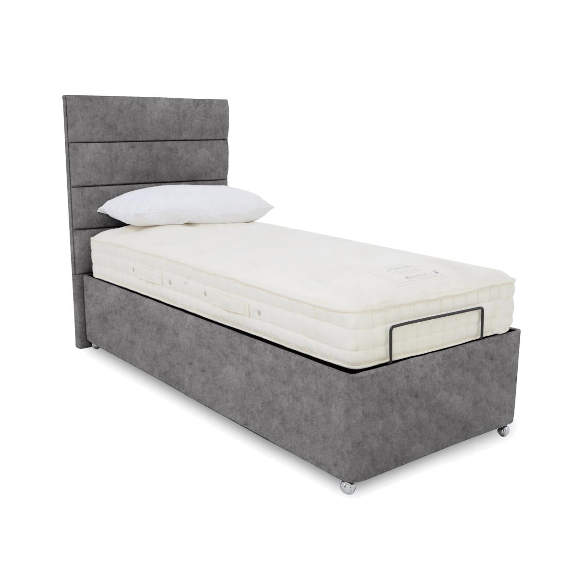 Transform the way you sleep and elevate your bedroom style with an adjustable divan bed base from our Natsu range. Complete with luxuriously cushioned headboards with modern horizontal fluting, the look is simply sumptuous and with multi-position electric-powered adjustability the level of comfort is just as impressive. They’re also perfect for anyone who needs a little extra help getting in and out of bed. As well as dual adjustable bases and optional massage functionality, these divan bases also offer optional storage drawers and large ottoman compartments. Designed and handcrafted exclusively for Furniture Village, the Natsu range is part of our E-Motion adjustable bed collection. This dual-adjustable divan base does it all. It’s electric-powered for the ultimate in comfort control, and has a large storage compartment and even a massage feature. Includes the stylish headboard. Why you'll love it Find perfect comfort for better sleep with this dual-adjustable massage ottoman divan base with massage function. Comes complete with our sophisticated Natsu headboard with stylish horizontal stitching. And you’ll love the roomy hidden storage compartment. Multi-setting massage function provides soothing relief for aching joints. Dual base is electric powered for smooth and efficient movement. With 2 separate bed bases, you and your partner have individual control. A simple wireless handset makes this bed so easy to adjust. Use the handy memory function to quickly return to your favourite comfort position. There’s even a weightless-feel pre-set position for TV watching. This divan base promotes restorative sleep by minimising discomfort that might wake you up. Adjustable beds can also reduce back ache, improve blood circulation and reduce snoring. It’s ideal if you need a little help getting in and out of bed. An ethical choice – this ottoman divan base is made with FSC-sourced wood. In a wide selection of fashionable upholstery fabric options. Designed and handcrafted just for Furniture Village. Made in the UK. This dual-adjustable massage ottoman divan base is part of our E-Motion range. What you need to know Mattress sold separately. To ensure bed base and mattress compatibility, consider a mattress from the E-Motion range. Please check the suitability of any mattress you are considering for this adjustable base. In king and super king sizes with dual control. Also available in single size. This ottoman divan base opens at the end. Maximum mattress weight is 40 kg for the single ottoman base and 80 kg for the king and super king ottoman bases. Please keep hands clear of the mechanism when opening and closing the ottoman. Do not sit on this adjustable bed with the foot end in a raised position. Clean regularly using a soft brush or vacuum with the curtain attachment. Deal with any spills promptly. Professional cleaning advised for oil- and grease-based stains. Some fabrics can show wear on areas of more use or in direct sunlight. Shop our E-Motion range for a huge choice of bed frames, divan bases, massage beds, mattresses and more.