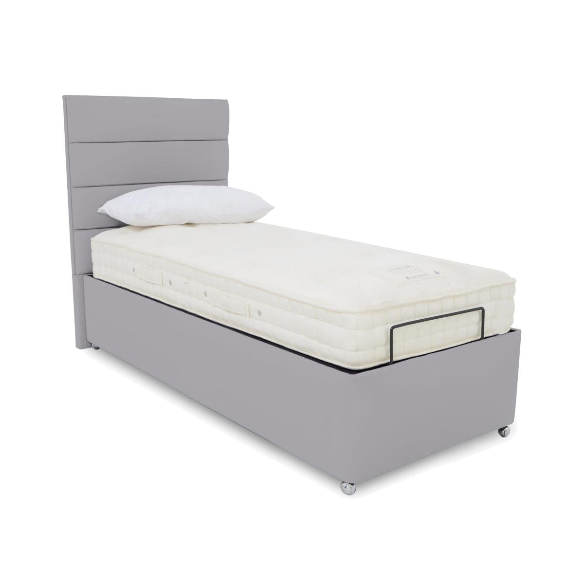 Transform the way you sleep and elevate your bedroom style with an adjustable divan bed base from our Natsu range. Complete with luxuriously cushioned headboards with modern horizontal fluting, the look is simply sumptuous and with multi-position electric-powered adjustability the level of comfort is just as impressive. They’re also perfect for anyone who needs a little extra help getting in and out of bed. As well as dual adjustable bases and optional massage functionality, these divan bases also offer optional storage drawers and large ottoman compartments. Designed and handcrafted exclusively for Furniture Village, the Natsu range is part of our E-Motion adjustable bed collection. This dual-adjustable divan base does it all. It’s electric-powered for the ultimate in comfort control, and has a large storage compartment and even a massage feature. Includes the stylish headboard. Why you'll love it Find perfect comfort for better sleep with this dual-adjustable massage ottoman divan base with massage function. Comes complete with our sophisticated Natsu headboard with stylish horizontal stitching. And you’ll love the roomy hidden storage compartment. Multi-setting massage function provides soothing relief for aching joints. Dual base is electric powered for smooth and efficient movement. With 2 separate bed bases, you and your partner have individual control. A simple wireless handset makes this bed so easy to adjust. Use the handy memory function to quickly return to your favourite comfort position. There’s even a weightless-feel pre-set position for TV watching. This divan base promotes restorative sleep by minimising discomfort that might wake you up. Adjustable beds can also reduce back ache, improve blood circulation and reduce snoring. It’s ideal if you need a little help getting in and out of bed. An ethical choice – this ottoman divan base is made with FSC-sourced wood. In a wide selection of fashionable upholstery fabric options. Designed and handcrafted just for Furniture Village. Made in the UK. This dual-adjustable massage ottoman divan base is part of our E-Motion range. What you need to know Mattress sold separately. To ensure bed base and mattress compatibility, consider a mattress from the E-Motion range. Please check the suitability of any mattress you are considering for this adjustable base. In king and super king sizes with dual control. Also available in single size. This ottoman divan base opens at the end. Maximum mattress weight is 40 kg for the single ottoman base and 80 kg for the king and super king ottoman bases. Please keep hands clear of the mechanism when opening and closing the ottoman. Do not sit on this adjustable bed with the foot end in a raised position. Clean regularly using a soft brush or vacuum with the curtain attachment. Deal with any spills promptly. Professional cleaning advised for oil- and grease-based stains. Some fabrics can show wear on areas of more use or in direct sunlight. Shop our E-Motion range for a huge choice of bed frames, divan bases, massage beds, mattresses and more.