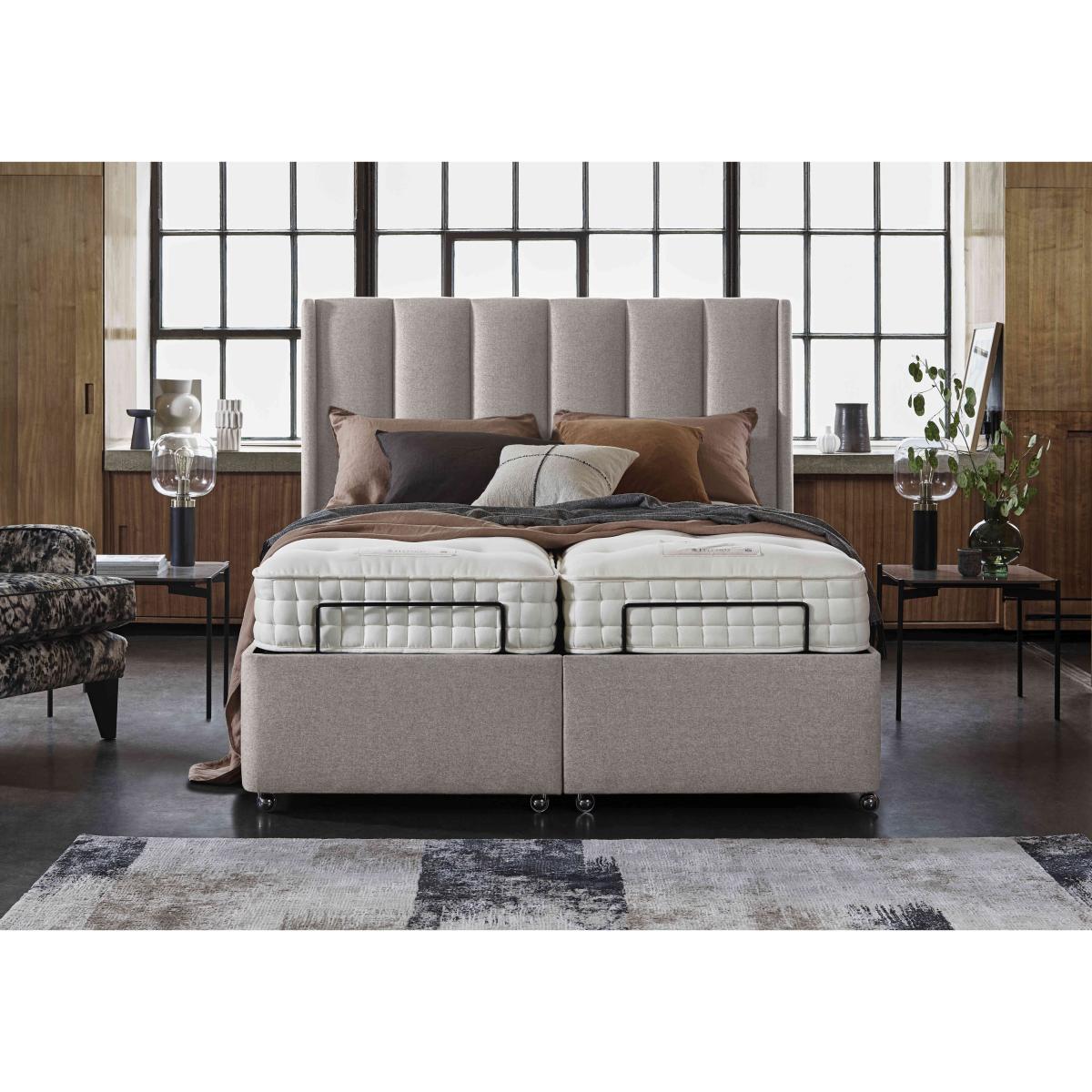 So elegant, so comfortable, so practical. The adjustable divan bases in our Ryo range are the perfect addition to any contemporary bedroom that’s focused on modern style and rejuvenating comfort. Each divan base comes complete with a tall winged headboard with understated fluting and each offers optional built-in storage drawers or ottoman storage. Bed bases are electric-powered for smooth, multi-position adjustability so it’s easy to find that perfect position whether you’re lying down or sitting up to watch TV. The range also includes dual adjustable bases and massage functionality. Designed and handcrafted exclusively for Furniture Village, the Ryo range is part of our E-Motion adjustable bed collection. This adjustable divan base promises real comfort – especially as it has a massage function and dual operation. That means two bed bases and two remote controls. Includes headboard. Why you'll love it Find perfect comfort for better sleep with this dual-adjustable divan base with massage function. Includes our elegantly curved Ryo headboard with subtle winged sides and fluting. Multi-setting massage function provides soothing relief for aching joints. Dual base is electric powered for smooth and efficient movement. With 2 separate bed bases, you and your partner have individual control. A simple wireless handset makes this bed so easy to adjust. Use the handy memory function to quickly return to your favourite comfort position. There’s even a weightless-feel pre-set position for TV watching. This divan base promotes restorative sleep by minimising discomfort that might wake you up. Adjustable beds can also reduce back ache, improve blood circulation and reduce snoring. It’s ideal if you need a little help getting in and out of bed. An ethical choice – this divan base is made with FSC-sourced wood. With optional storage drawers in a range of configurations. In a wide selection of fashionable upholstery fabric options. Designed and handcrafted just for Furniture Village. Made in the UK. This dual-adjustable massage divan base is part of our E-Motion range. What you need to know Mattress sold separately. To ensure bed base and mattress compatibility, consider a mattress from the E-Motion range. Please check the suitability of any mattress you are considering for this adjustable base. In king and super king sizes with dual control. Also available in single size. Do not sit on this adjustable bed with the foot end in a raised position. Clean regularly using a soft brush or vacuum with the curtain attachment. Deal with any spills promptly. Professional cleaning advised for oil- and grease-based stains. Some fabrics can show wear on areas of more use or in direct sunlight. Shop our E-Motion range for a huge choice of bed frames, divan bases, massage beds, mattresses and more.