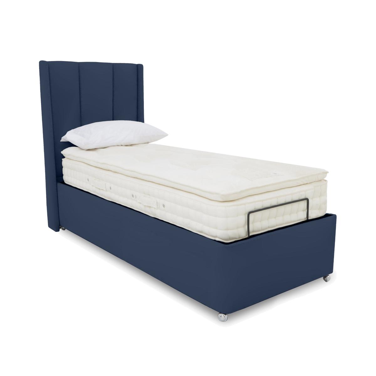 So elegant, so comfortable, so practical. The adjustable divan bases in our Ryo range are the perfect addition to any contemporary bedroom that’s focused on modern style and rejuvenating comfort. Each divan base comes complete with a tall winged headboard with understated fluting and each offers optional built-in storage drawers or ottoman storage. Bed bases are electric-powered for smooth, multi-position adjustability so it’s easy to find that perfect position whether you’re lying down or sitting up to watch TV. The range also includes dual adjustable bases and massage functionality. Designed and handcrafted exclusively for Furniture Village, the Ryo range is part of our E-Motion adjustable bed collection. With two-side individual control plus massage feature and built-in storage, you’ll love this adjustable ottoman divan base. And you’ll love its luxurious winged headboard too. Why you'll love it Find perfect comfort for better sleep with this dual-adjustable massage ottoman divan base with massage function. Includes our elegantly curved Ryo headboard with subtle winged sides and fluting. And you’ll love the roomy hidden storage compartment. Multi-setting massage function provides soothing relief for aching joints. Dual base is electric powered for smooth and efficient movement. With 2 separate bed bases, you and your partner have individual control. A simple wireless handset makes this bed so easy to adjust. Use the handy memory function to quickly return to your favourite comfort position. There’s even a weightless-feel pre-set position for TV watching. This divan base promotes restorative sleep by minimising discomfort that might wake you up. Adjustable beds can also reduce back ache, improve blood circulation and reduce snoring. It’s ideal if you need a little help getting in and out of bed. An ethical choice – this ottoman divan base is made with FSC-sourced wood. In a wide selection of fashionable upholstery fabric options. Designed and handcrafted just for Furniture Village. Made in the UK. This dual-adjustable massage ottoman divan base is part of our E-Motion range. What you need to know Mattress sold separately. To ensure bed base and mattress compatibility, consider a mattress from the E-Motion range. Please check the suitability of any mattress you are considering for this adjustable base. In king and super king sizes with dual control. Also available in single size. This ottoman divan base opens at the end. Maximum mattress weight is 40 kg for the single ottoman base and 80 kg for the king and super king ottoman bases. Please keep hands clear of the mechanism when opening and closing the ottoman. Do not sit on this adjustable bed with the foot end in a raised position. Clean regularly using a soft brush or vacuum with the curtain attachment. Deal with any spills promptly. Professional cleaning advised for oil- and grease-based stains. Some fabrics can show wear on areas of more use or in direct sunlight. Shop our E-Motion range for a huge choice of bed frames, divan bases, massage beds, mattresses and more.
