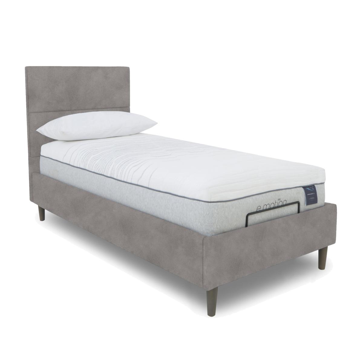 The strikingly modern and minimalist look of our Sakura range of bed frames is in luxurious contrast to the comfort you’ll find within. This range of electric-powered adjustable bed frames takes personalised relaxation to another level with multi-position adjustability and optional built-in massage function. Beautifully upholstered in a wide choice of fabrics and with deeply cushioned headboards, they deliver true comfort whether you’re sleeping or sitting up in bed to read. Offered in a choice of sizes, the range also includes bed frames with dual adjustable bases. Designed and handcrafted exclusively for Furniture Village, the Sakura range is part of our E-Motion adjustable bed collection. Redefining personalised comfort, this fabulous adjustable bed frame features a stylishly understated headboard and a smooth electric-powered mechanism. Why you'll love it Find perfect comfort for better sleep with this adjustable bed frame. Its stylish cushioned headboard is modern and minimal. The base is electric powered for smooth and efficient movement. A simple wireless handset makes this bed so easy to adjust. Use the handy memory function to quickly return to your favourite comfort position. There’s even a weightless-feel pre-set position for TV watching. This bed frame promotes restorative sleep by minimising discomfort that might wake you up. Adjustable beds can also reduce back ache, improve blood circulation and reduce snoring. It’s ideal if you need a little help getting in and out of bed. An ethical choice – this bed frame is made with FSC-sourced wood. In a wide selection of fashionable upholstery fabric options. Designed and handcrafted just for Furniture Village. Made in the UK. Also available with 2-person adjustability and massage function. This adjustable bed frame is part of our E-Motion range. What you need to know Mattress sold separately. To ensure bed base and mattress compatibility, consider a mattress from the E-Motion range. Please check the suitability of any mattress you are considering for this adjustable base. Available in single and king sizes. Do not sit on this adjustable bed with the foot end in a raised position. Clean regularly using a soft brush or vacuum with the curtain attachment. Deal with any spills promptly. Professional cleaning advised for oil- and grease-based stains. Some fabrics can show wear on areas of more use or in direct sunlight. Shop our E-Motion range for a huge choice of bed frames, divan bases, massage beds, mattresses and more.
