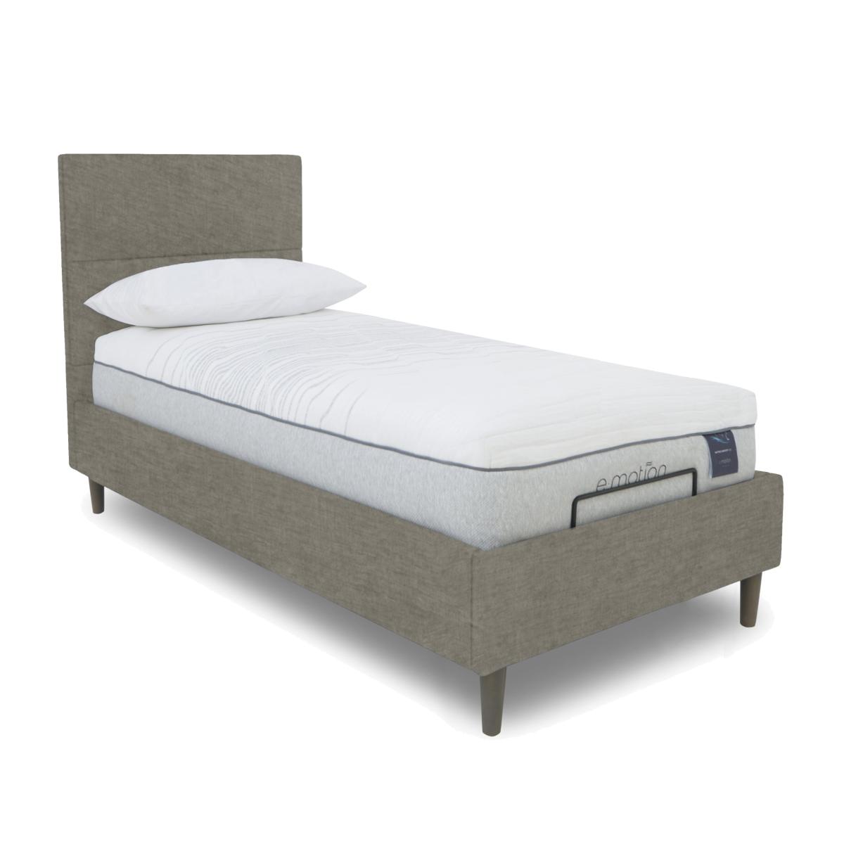 The strikingly modern and minimalist look of our Sakura range of bed frames is in luxurious contrast to the comfort you’ll find within. This range of electric-powered adjustable bed frames takes personalised relaxation to another level with multi-position adjustability and optional built-in massage function. Beautifully upholstered in a wide choice of fabrics and with deeply cushioned headboards, they deliver true comfort whether you’re sleeping or sitting up in bed to read. Offered in a choice of sizes, the range also includes bed frames with dual adjustable bases. Designed and handcrafted exclusively for Furniture Village, the Sakura range is part of our E-Motion adjustable bed collection. Redefining personalised comfort, this fabulous adjustable bed frame features a stylishly understated headboard and a smooth electric-powered mechanism. Why you'll love it Find perfect comfort for better sleep with this adjustable bed frame. Its stylish cushioned headboard is modern and minimal. The base is electric powered for smooth and efficient movement. A simple wireless handset makes this bed so easy to adjust. Use the handy memory function to quickly return to your favourite comfort position. There’s even a weightless-feel pre-set position for TV watching. This bed frame promotes restorative sleep by minimising discomfort that might wake you up. Adjustable beds can also reduce back ache, improve blood circulation and reduce snoring. It’s ideal if you need a little help getting in and out of bed. An ethical choice – this bed frame is made with FSC-sourced wood. In a wide selection of fashionable upholstery fabric options. Designed and handcrafted just for Furniture Village. Made in the UK. Also available with 2-person adjustability and massage function. This adjustable bed frame is part of our E-Motion range. What you need to know Mattress sold separately. To ensure bed base and mattress compatibility, consider a mattress from the E-Motion range. Please check the suitability of any mattress you are considering for this adjustable base. Available in single and king sizes. Do not sit on this adjustable bed with the foot end in a raised position. Clean regularly using a soft brush or vacuum with the curtain attachment. Deal with any spills promptly. Professional cleaning advised for oil- and grease-based stains. Some fabrics can show wear on areas of more use or in direct sunlight. Shop our E-Motion range for a huge choice of bed frames, divan bases, massage beds, mattresses and more.