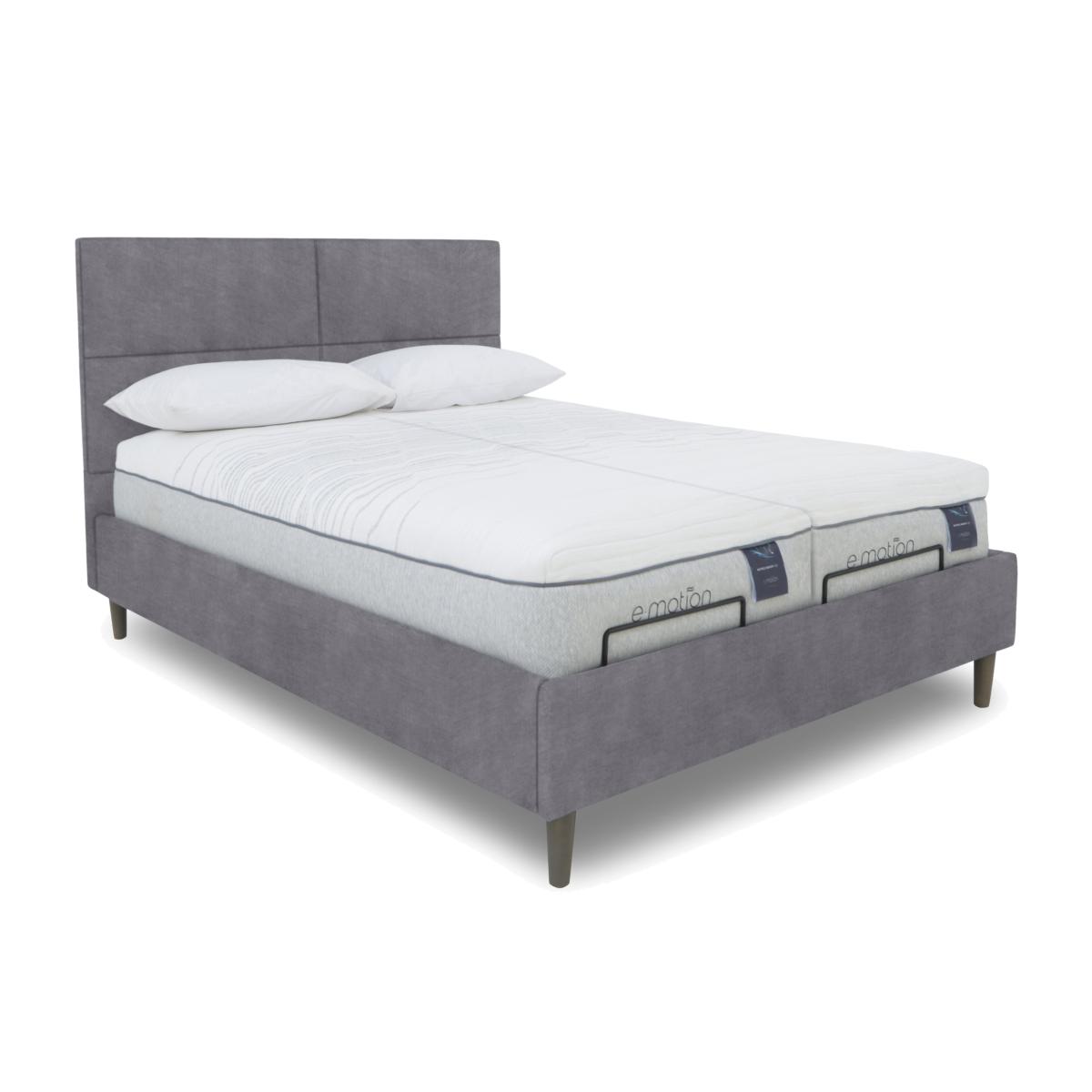 The strikingly modern and minimalist look of our Sakura range of bed frames is in luxurious contrast to the comfort you’ll find within. This range of electric-powered adjustable bed frames takes personalised relaxation to another level with multi-position adjustability and optional built-in massage function. Beautifully upholstered in a wide choice of fabrics and with deeply cushioned headboards, they deliver true comfort whether you’re sleeping or sitting up in bed to read. Offered in a choice of sizes, the range also includes bed frames with dual adjustable bases. Designed and handcrafted exclusively for Furniture Village, the Sakura range is part of our E-Motion adjustable bed collection. You’ll both love the look of this upholstered adjustable bed frame with stylishly understated headboard. And you’ll appreciate the dual control operation for individualised comfort. Why you'll love it Find perfect comfort for better sleep with this dual-adjustable bed frame. Its stylish cushioned headboard is modern and minimal. Dual base is electric powered for smooth and efficient movement. With 2 separate bed bases, you and your partner have individual control. A simple wireless handset makes this bed so easy to adjust. Use the handy memory function to quickly return to your favourite comfort position. There’s even a weightless-feel pre-set position for TV watching. This bed frame promotes restorative sleep by minimising discomfort that might wake you up. Adjustable beds can also reduce back ache, improve blood circulation and reduce snoring. It’s ideal if you need a little help getting in and out of bed. An ethical choice – this bed frame is made with FSC-sourced wood. In a wide selection of fashionable upholstery fabric options. Designed and handcrafted just for Furniture Village. Made in the UK. Also available with ultra-relaxing massage feature. This dual-adjustable bed frame is part of our E-Motion range. What you need to know Mattress sold separately. To ensure bed base and mattress compatibility, consider a mattress from the E-Motion range. Please check the suitability of any mattress you are considering for this adjustable base. Available in king and super king sizes. Do not sit on this adjustable bed with the foot end in a raised position. Clean regularly using a soft brush or vacuum with the curtain attachment. Deal with any spills promptly. Professional cleaning advised for oil- and grease-based stains. Some fabrics can show wear on areas of more use or in direct sunlight. Shop our E-Motion range for a huge choice of bed frames, divan bases, massage beds, mattresses and more.
