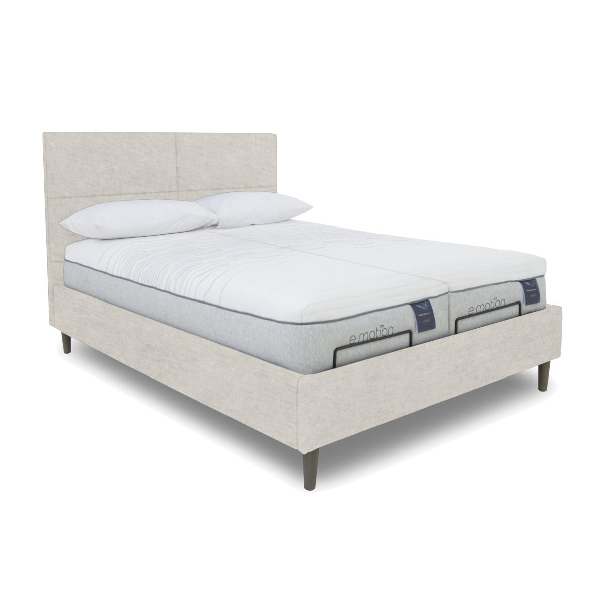 The strikingly modern and minimalist look of our Sakura range of bed frames is in luxurious contrast to the comfort you’ll find within. This range of electric-powered adjustable bed frames takes personalised relaxation to another level with multi-position adjustability and optional built-in massage function. Beautifully upholstered in a wide choice of fabrics and with deeply cushioned headboards, they deliver true comfort whether you’re sleeping or sitting up in bed to read. Offered in a choice of sizes, the range also includes bed frames with dual adjustable bases. Designed and handcrafted exclusively for Furniture Village, the Sakura range is part of our E-Motion adjustable bed collection. You’ll both love the look of this upholstered adjustable bed frame with stylishly understated headboard. And you’ll appreciate the dual control operation for individualised comfort. Why you'll love it Find perfect comfort for better sleep with this dual-adjustable bed frame. Its stylish cushioned headboard is modern and minimal. Dual base is electric powered for smooth and efficient movement. With 2 separate bed bases, you and your partner have individual control. A simple wireless handset makes this bed so easy to adjust. Use the handy memory function to quickly return to your favourite comfort position. There’s even a weightless-feel pre-set position for TV watching. This bed frame promotes restorative sleep by minimising discomfort that might wake you up. Adjustable beds can also reduce back ache, improve blood circulation and reduce snoring. It’s ideal if you need a little help getting in and out of bed. An ethical choice – this bed frame is made with FSC-sourced wood. In a wide selection of fashionable upholstery fabric options. Designed and handcrafted just for Furniture Village. Made in the UK. Also available with ultra-relaxing massage feature. This dual-adjustable bed frame is part of our E-Motion range. What you need to know Mattress sold separately. To ensure bed base and mattress compatibility, consider a mattress from the E-Motion range. Please check the suitability of any mattress you are considering for this adjustable base. Available in king and super king sizes. Do not sit on this adjustable bed with the foot end in a raised position. Clean regularly using a soft brush or vacuum with the curtain attachment. Deal with any spills promptly. Professional cleaning advised for oil- and grease-based stains. Some fabrics can show wear on areas of more use or in direct sunlight. Shop our E-Motion range for a huge choice of bed frames, divan bases, massage beds, mattresses and more.