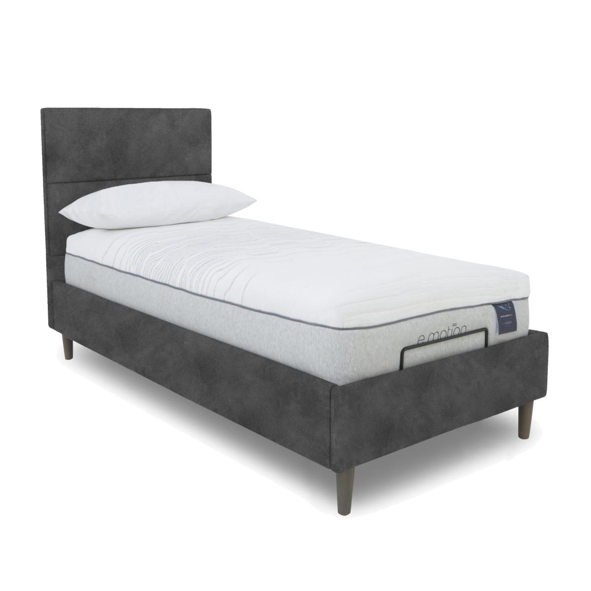 The strikingly modern and minimalist look of our Sakura range of bed frames is in luxurious contrast to the comfort you’ll find within. This range of electric-powered adjustable bed frames takes personalised relaxation to another level with multi-position adjustability and optional built-in massage function. Beautifully upholstered in a wide choice of fabrics and with deeply cushioned headboards, they deliver true comfort whether you’re sleeping or sitting up in bed to read. Offered in a choice of sizes, the range also includes bed frames with dual adjustable bases. Designed and handcrafted exclusively for Furniture Village, the Sakura range is part of our E-Motion adjustable bed collection. Sleeping is believing. This minimal and modern bed frame has electric-powered adjustability as well as a massage feature. Dual operation gives both of you individual control. Why you'll love it Find perfect comfort for better sleep with this dual-adjustable bed frame with massage function. Its stylish cushioned headboard is modern and minimal. Multi-setting massage function provides soothing relief for aching joints. Dual base is electric powered for smooth and efficient movement. With 2 separate bed bases, you and your partner have individual control. A simple wireless handset makes this bed so easy to adjust. Use the handy memory function to quickly return to your favourite comfort position. There’s even a weightless-feel pre-set position for TV watching. This bed frame promotes restorative sleep by minimising discomfort that might wake you up. Adjustable beds can also reduce back ache, improve blood circulation and reduce snoring. It’s ideal if you need a little help getting in and out of bed. An ethical choice – this bed frame is made with FSC-sourced wood. In a wide selection of fashionable upholstery fabric options. Designed and handcrafted just for Furniture Village. Made in the UK. This dual-adjustable massage bed frame is part of our E-Motion range. What you need to know Mattress sold separately. To ensure bed base and mattress compatibility, consider a mattress from the E-Motion range. Please check the suitability of any mattress you are considering for this adjustable base. In king and super king sizes with dual control. Also available in single size. Do not sit on this adjustable bed with the foot end in a raised position. Clean regularly using a soft brush or vacuum with the curtain attachment. Deal with any spills promptly. Professional cleaning advised for oil- and grease-based stains. Some fabrics can show wear on areas of more use or in direct sunlight. Shop our E-Motion range for a huge choice of bed frames, divan bases, massage beds, mattresses and more.