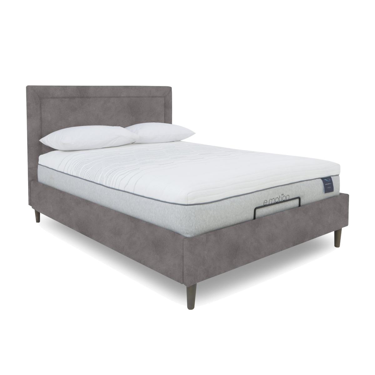 Elegance and sophistication meet truly personalised comfort in our Yumi range of adjustable bed frames. The look is stunning with beautiful upholstery and deeply cushioned headboards while smooth electric-powered multi-position adjustable bases make finding the perfect position for rejuvenating sleep simply effortless. They’re also ideal for anyone who needs extra help getting in and out of bed. The range includes bed frames with dual adjustable bases and optional massage functionality. Bed frames are available in several sizes and in a wide choice of upholstery fabrics. Designed and handcrafted exclusively for Furniture Village, the Yumi range is part of our E-Motion adjustable bed collection. With its contemporary understated headboard, this upholstered adjustable bed frame delivers style and comfort like never before. The smooth electric-powered mechanism is remote controlled. Why you'll love it Find perfect comfort for better sleep with this adjustable bed frame. This bed frame features a contemporary low-profile headboard. The base is electric powered for smooth and efficient movement. A simple wireless handset makes this bed so easy to adjust. Use the handy memory function to quickly return to your favourite comfort position. There’s even a weightless-feel pre-set position for TV watching. This bed frame promotes restorative sleep by minimising discomfort that might wake you up. Adjustable beds can also reduce back ache, improve blood circulation and reduce snoring. It’s ideal if you need a little help getting in and out of bed. An ethical choice – this bed frame is made with FSC-sourced wood. In a wide selection of fashionable upholstery fabric options. Designed and handcrafted just for Furniture Village. Made in the UK. Also available with 2-person adjustability and massage function. This adjustable bed frame is part of our E-Motion range. What you need to know Mattress sold separately. To ensure bed base and mattress compatibility, consider a mattress from the E-Motion range. Please check the suitability of any mattress you are considering for this adjustable base. Available in single and king sizes. Do not sit on this adjustable bed with the foot end in a raised position. Clean regularly using a soft brush or vacuum with the curtain attachment. Deal with any spills promptly. Professional cleaning advised for oil- and grease-based stains. Some fabrics can show wear on areas of more use or in direct sunlight. Shop our E-Motion range for a huge choice of bed frames, divan bases, massage beds, mattresses and more.