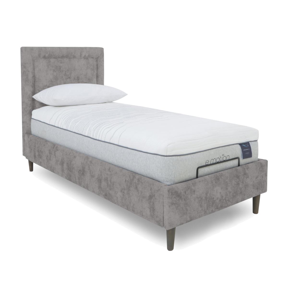 Elegance and sophistication meet truly personalised comfort in our Yumi range of adjustable bed frames. The look is stunning with beautiful upholstery and deeply cushioned headboards while smooth electric-powered multi-position adjustable bases make finding the perfect position for rejuvenating sleep simply effortless. They’re also ideal for anyone who needs extra help getting in and out of bed. The range includes bed frames with dual adjustable bases and optional massage functionality. Bed frames are available in several sizes and in a wide choice of upholstery fabrics. Designed and handcrafted exclusively for Furniture Village, the Yumi range is part of our E-Motion adjustable bed collection. With its contemporary understated headboard, this upholstered adjustable bed frame delivers style and comfort like never before. The smooth electric-powered mechanism is remote controlled. Why you'll love it Find perfect comfort for better sleep with this adjustable bed frame. This bed frame features a contemporary low-profile headboard. The base is electric powered for smooth and efficient movement. A simple wireless handset makes this bed so easy to adjust. Use the handy memory function to quickly return to your favourite comfort position. There’s even a weightless-feel pre-set position for TV watching. This bed frame promotes restorative sleep by minimising discomfort that might wake you up. Adjustable beds can also reduce back ache, improve blood circulation and reduce snoring. It’s ideal if you need a little help getting in and out of bed. An ethical choice – this bed frame is made with FSC-sourced wood. In a wide selection of fashionable upholstery fabric options. Designed and handcrafted just for Furniture Village. Made in the UK. Also available with 2-person adjustability and massage function. This adjustable bed frame is part of our E-Motion range. What you need to know Mattress sold separately. To ensure bed base and mattress compatibility, consider a mattress from the E-Motion range. Please check the suitability of any mattress you are considering for this adjustable base. Available in single and king sizes. Do not sit on this adjustable bed with the foot end in a raised position. Clean regularly using a soft brush or vacuum with the curtain attachment. Deal with any spills promptly. Professional cleaning advised for oil- and grease-based stains. Some fabrics can show wear on areas of more use or in direct sunlight. Shop our E-Motion range for a huge choice of bed frames, divan bases, massage beds, mattresses and more.