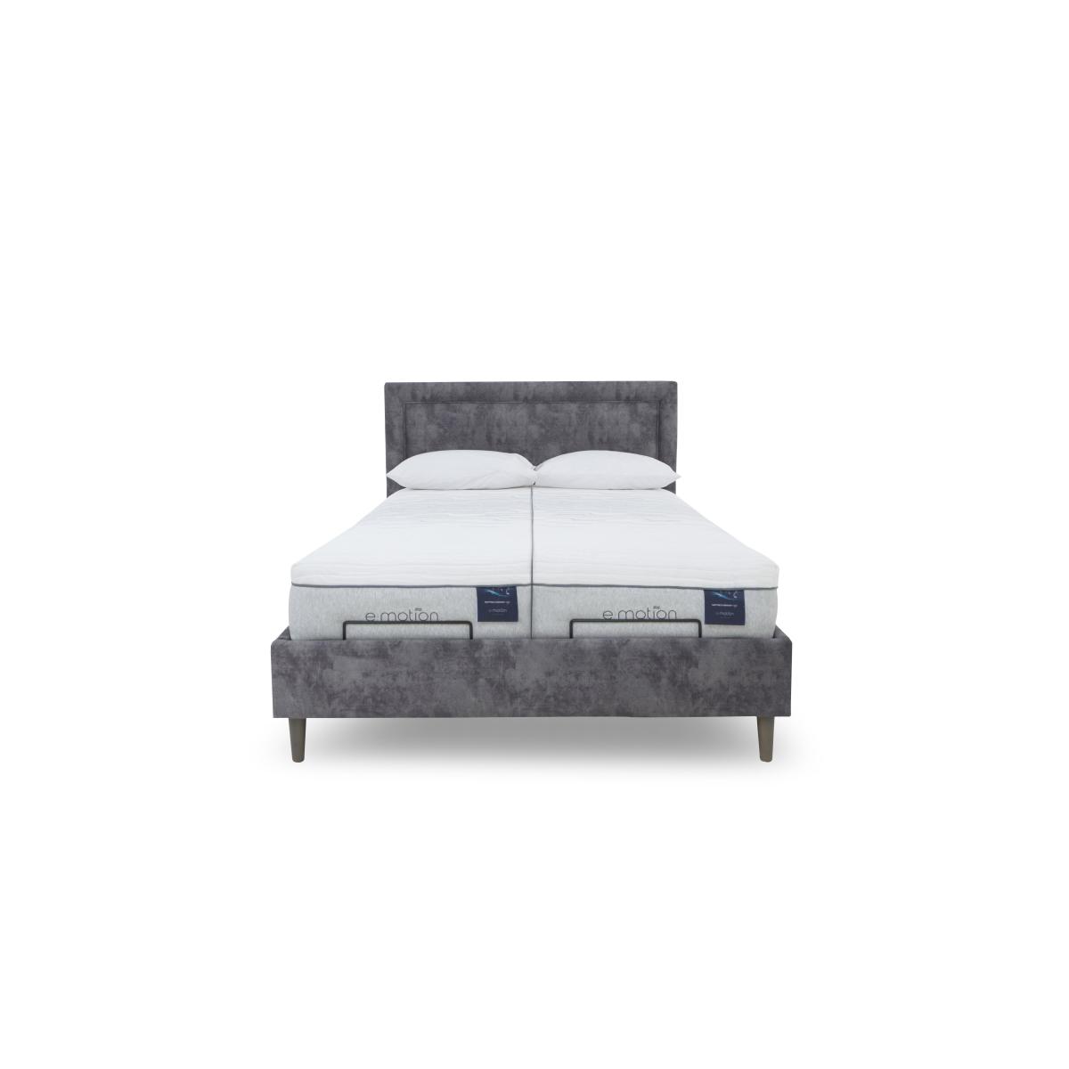 Elegance and sophistication meet truly personalised comfort in our Yumi range of adjustable bed frames. The look is stunning with beautiful upholstery and deeply cushioned headboards while smooth electric-powered multi-position adjustable bases make finding the perfect position for rejuvenating sleep simply effortless. They’re also ideal for anyone who needs extra help getting in and out of bed. The range includes bed frames with dual adjustable bases and optional massage functionality. Bed frames are available in several sizes and in a wide choice of upholstery fabrics. Designed and handcrafted exclusively for Furniture Village, the Yumi range is part of our E-Motion adjustable bed collection. This beautiful upholstered adjustable bed frame with contemporary headboard offers dual control, so you and your partner can get comfortable the way each of you prefer. Why you'll love it Find perfect comfort for better sleep with this dual-adjustable bed frame. This bed frame features a contemporary low-profile headboard. Dual base is electric powered for smooth and efficient movement. With 2 separate bed bases, you and your partner have individual control. A simple wireless handset makes this bed so easy to adjust. Use the handy memory function to quickly return to your favourite comfort position. There’s even a weightless-feel pre-set position for TV watching. This bed frame promotes restorative sleep by minimising discomfort that might wake you up. Adjustable beds can also reduce back ache, improve blood circulation and reduce snoring. It’s ideal if you need a little help getting in and out of bed. An ethical choice – this bed frame is made with FSC-sourced wood. In a wide selection of fashionable upholstery fabric options. Designed and handcrafted just for Furniture Village. Made in the UK. Also available with ultra-relaxing massage feature. This dual-adjustable bed frame is part of our E-Motion range. What you need to know Mattress sold separately. To ensure bed base and mattress compatibility, consider a mattress from the E-Motion range. Please check the suitability of any mattress you are considering for this adjustable base. Available in king and super king sizes. Do not sit on this adjustable bed with the foot end in a raised position. Clean regularly using a soft brush or vacuum with the curtain attachment. Deal with any spills promptly. Professional cleaning advised for oil- and grease-based stains. Some fabrics can show wear on areas of more use or in direct sunlight. Shop our E-Motion range for a huge choice of bed frames, divan bases, massage beds, mattresses and more.