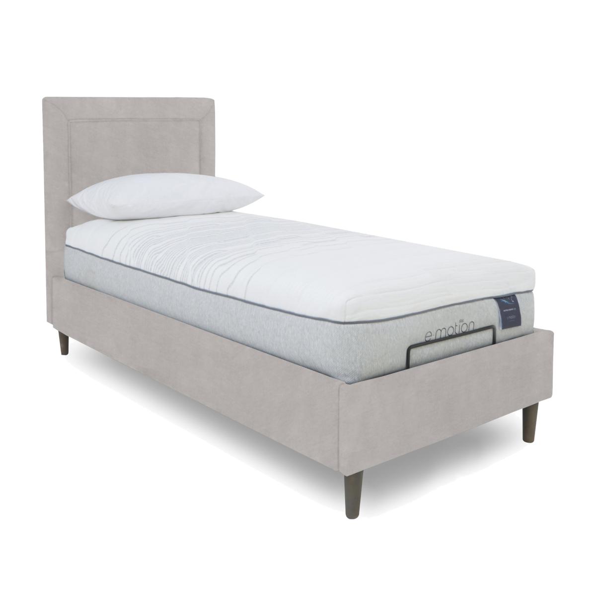 Elegance and sophistication meet truly personalised comfort in our Yumi range of adjustable bed frames. The look is stunning with beautiful upholstery and deeply cushioned headboards while smooth electric-powered multi-position adjustable bases make finding the perfect position for rejuvenating sleep simply effortless. They’re also ideal for anyone who needs extra help getting in and out of bed. The range includes bed frames with dual adjustable bases and optional massage functionality. Bed frames are available in several sizes and in a wide choice of upholstery fabrics. Designed and handcrafted exclusively for Furniture Village, the Yumi range is part of our E-Motion adjustable bed collection. This contemporary adjustable bed frame does it all. The dual operation gives you and your partner individual control, and both sides have massage functionality. Why you'll love it Find perfect comfort for better sleep with this dual-adjustable bed frame with massage function. This bed frame features a contemporary low-profile headboard. Multi-setting massage function provides soothing relief for aching joints. Dual base is electric powered for smooth and efficient movement. With 2 separate bed bases, you and your partner have individual control. A simple wireless handset makes this bed so easy to adjust. Use the handy memory function to quickly return to your favourite comfort position. There’s even a weightless-feel pre-set position for TV watching. This bed frame promotes restorative sleep by minimising discomfort that might wake you up. Adjustable beds can also reduce back ache, improve blood circulation and reduce snoring. It’s ideal if you need a little help getting in and out of bed. An ethical choice – this bed frame is made with FSC-sourced wood. In a wide selection of fashionable upholstery fabric options. Designed and handcrafted just for Furniture Village. Made in the UK. This dual-adjustable massage bed frame is part of our E-Motion range. What you need to know Mattress sold separately. To ensure bed base and mattress compatibility, consider a mattress from the E-Motion range. Please check the suitability of any mattress you are considering for this adjustable base. In king and super king sizes with dual control. Also available in single size. Do not sit on this adjustable bed with the foot end in a raised position. Clean regularly using a soft brush or vacuum with the curtain attachment. Deal with any spills promptly. Professional cleaning advised for oil- and grease-based stains. Some fabrics can show wear on areas of more use or in direct sunlight. Shop our E-Motion range for a huge choice of bed frames, divan bases, massage beds, mattresses and more.