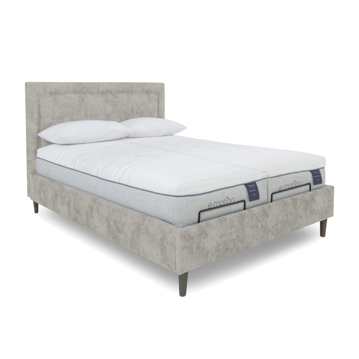 Elegance and sophistication meet truly personalised comfort in our Yumi range of adjustable bed frames. The look is stunning with beautiful upholstery and deeply cushioned headboards while smooth electric-powered multi-position adjustable bases make finding the perfect position for rejuvenating sleep simply effortless. They’re also ideal for anyone who needs extra help getting in and out of bed. The range includes bed frames with dual adjustable bases and optional massage functionality. Bed frames are available in several sizes and in a wide choice of upholstery fabrics. Designed and handcrafted exclusively for Furniture Village, the Yumi range is part of our E-Motion adjustable bed collection. This contemporary adjustable bed frame does it all. The dual operation gives you and your partner individual control, and both sides have massage functionality. Why you'll love it Find perfect comfort for better sleep with this dual-adjustable bed frame with massage function. This bed frame features a contemporary low-profile headboard. Multi-setting massage function provides soothing relief for aching joints. Dual base is electric powered for smooth and efficient movement. With 2 separate bed bases, you and your partner have individual control. A simple wireless handset makes this bed so easy to adjust. Use the handy memory function to quickly return to your favourite comfort position. There’s even a weightless-feel pre-set position for TV watching. This bed frame promotes restorative sleep by minimising discomfort that might wake you up. Adjustable beds can also reduce back ache, improve blood circulation and reduce snoring. It’s ideal if you need a little help getting in and out of bed. An ethical choice – this bed frame is made with FSC-sourced wood. In a wide selection of fashionable upholstery fabric options. Designed and handcrafted just for Furniture Village. Made in the UK. This dual-adjustable massage bed frame is part of our E-Motion range. What you need to know Mattress sold separately. To ensure bed base and mattress compatibility, consider a mattress from the E-Motion range. Please check the suitability of any mattress you are considering for this adjustable base. In king and super king sizes with dual control. Also available in single size. Do not sit on this adjustable bed with the foot end in a raised position. Clean regularly using a soft brush or vacuum with the curtain attachment. Deal with any spills promptly. Professional cleaning advised for oil- and grease-based stains. Some fabrics can show wear on areas of more use or in direct sunlight. Shop our E-Motion range for a huge choice of bed frames, divan bases, massage beds, mattresses and more.