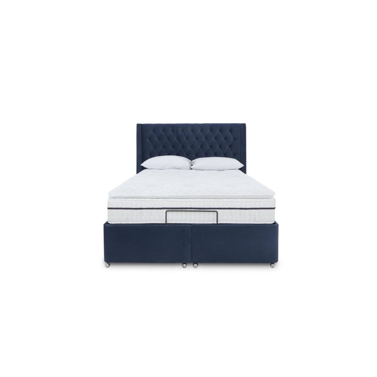 Statement bedroom style meets superb comfort in our Zen range of stunning adjustable divan bed bases. Each bed in the range comes complete with the most striking of headboards – tall, winged and with rows of buttoning for a glam twist on a classic look. Bases are electric powered and offer multi-position adjustability for complete comfort whether you’re sleeping or watching TV in bed. Zen divan bases come with optional drawers, ottoman storage and massage functionality and are available in a choice of sizes. The range also includes dual adjustable bases. Designed and handcrafted exclusively for Furniture Village, the Zen range is part of our E-Motion adjustable bed collection. Comfort your way. This adjustable divan base makes better sleep easier thanks to its electric-powered base and wireless control. That tall winged headboard is simply stunning. Why you'll love it Find perfect comfort for better sleep with this adjustable divan base. Includes our statement Zen headboard with traditional buttoning and winged sides. A simple wireless handset makes this bed so easy to adjust. Use the handy memory function to quickly return to your favourite comfort position. There’s even a weightless-feel pre-set position for TV watching. This divan base promotes restorative sleep by minimising discomfort that might wake you up. Adjustable beds can also reduce back ache, improve blood circulation and reduce snoring. It’s ideal if you need a little help getting in and out of bed. An ethical choice – this divan base is made with FSC-sourced wood. With optional storage drawers in a range of configurations. In a wide selection of fashionable upholstery fabric options. Designed and handcrafted just for Furniture Village. Made in the UK. Also available with 2-person adjustability and massage function. This adjustable divan base is part of our E-Motion range. What you need to know Mattress sold separately. To ensure bed base and mattress compatibility, consider a mattress from the E-Motion range. Please check the suitability of any mattress you are considering for this adjustable base. Available in single and king sizes. Do not sit on this adjustable bed with the foot end in a raised position. Clean regularly using a soft brush or vacuum with the curtain attachment. Deal with any spills promptly. Professional cleaning advised for oil- and grease-based stains. Some fabrics can show wear on areas of more use or in direct sunlight. Shop our E-Motion range for a huge choice of bed frames, divan bases, massage beds, mattresses and more.