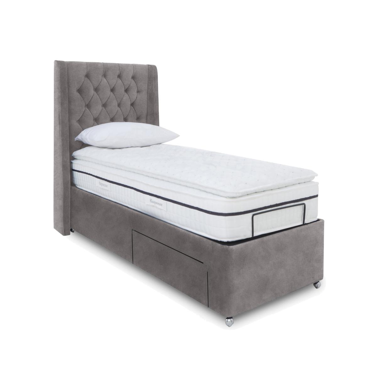 E-Motion Zen Dual Adjustable Divan Base With 2 Drawers with Massage Function and Headboard - Single - Dapple Sterling