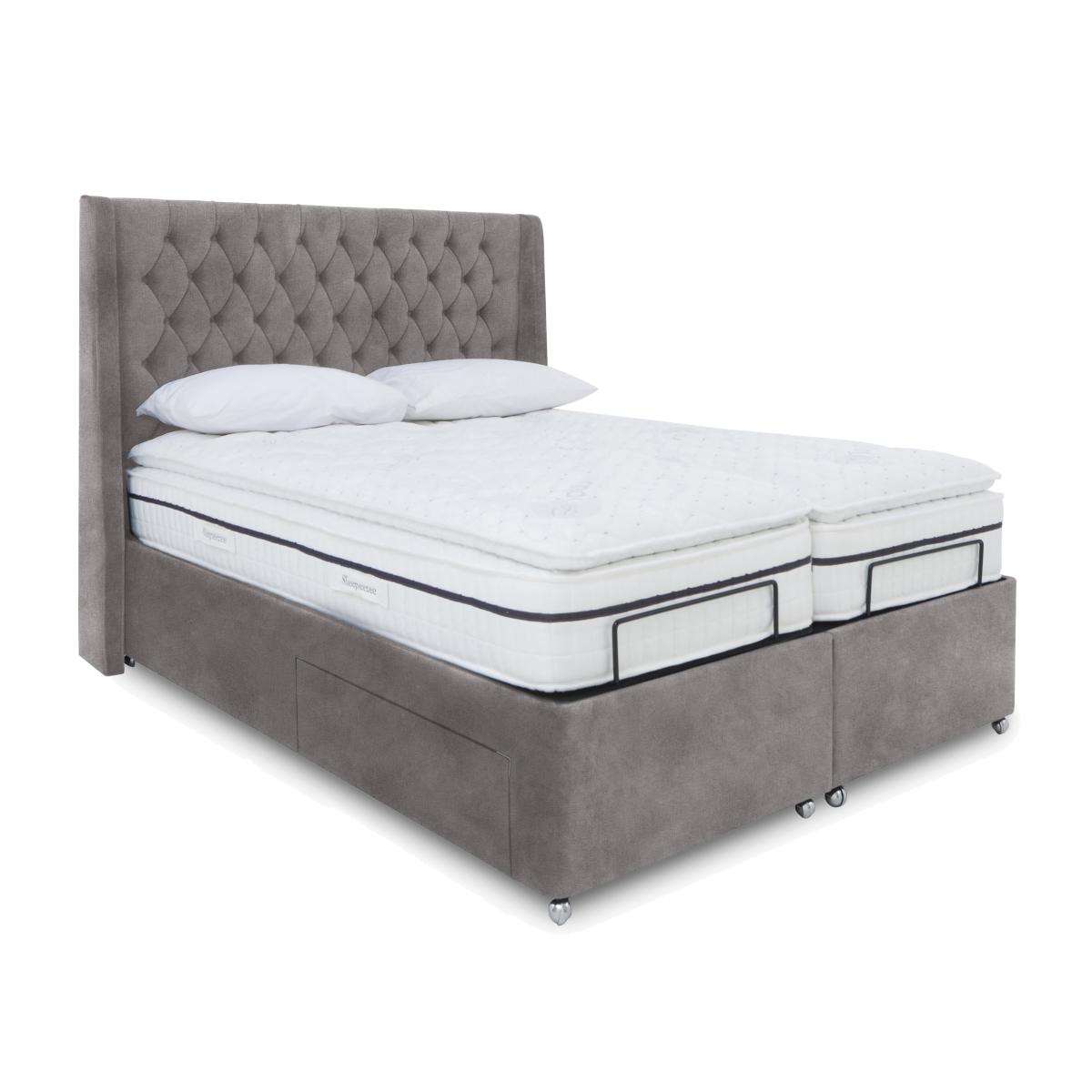 E-Motion Akira Dual Adjustable Ottoman Divan Base with Massage Function and Headboard - King Size - Smokey Quartz