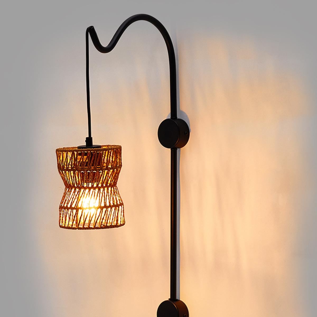 As night falls, brighten your space with artisan craftsmanship and modern minimalism. This wall lamp features a hand-braided lampshade paired with a sleek metal bracket, blending warmth with contemporary style. The hourglass-shaped shade adds a geometric touch, while the light filters through, casting even illumination and decorative patterns. Ideal for bedrooms, living rooms, corridors, or offices, it enhances the ambiance and visual appeal of any room.
