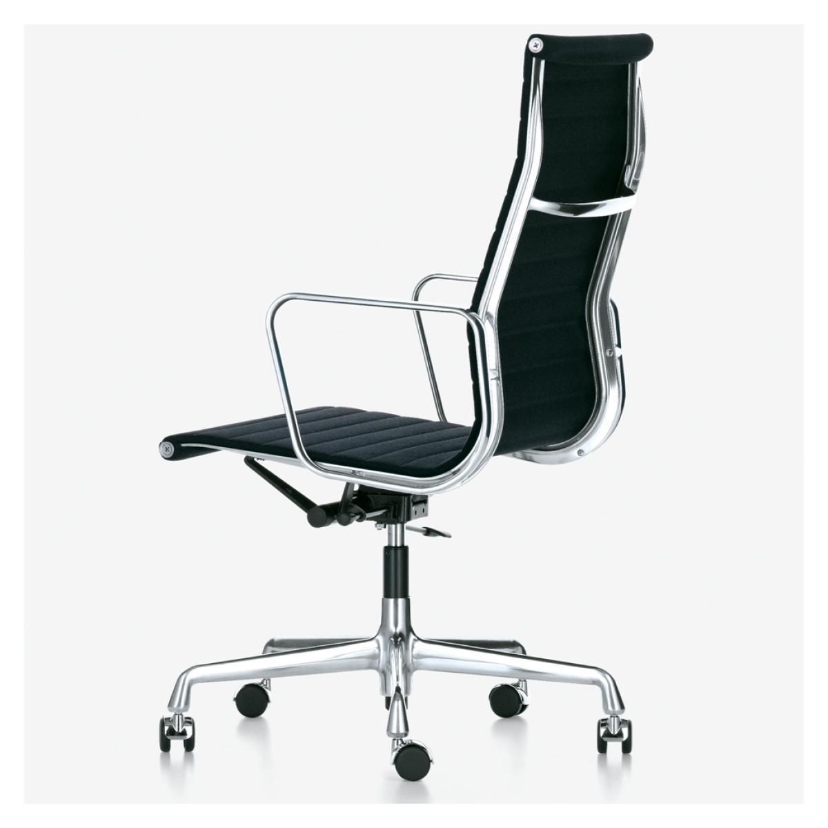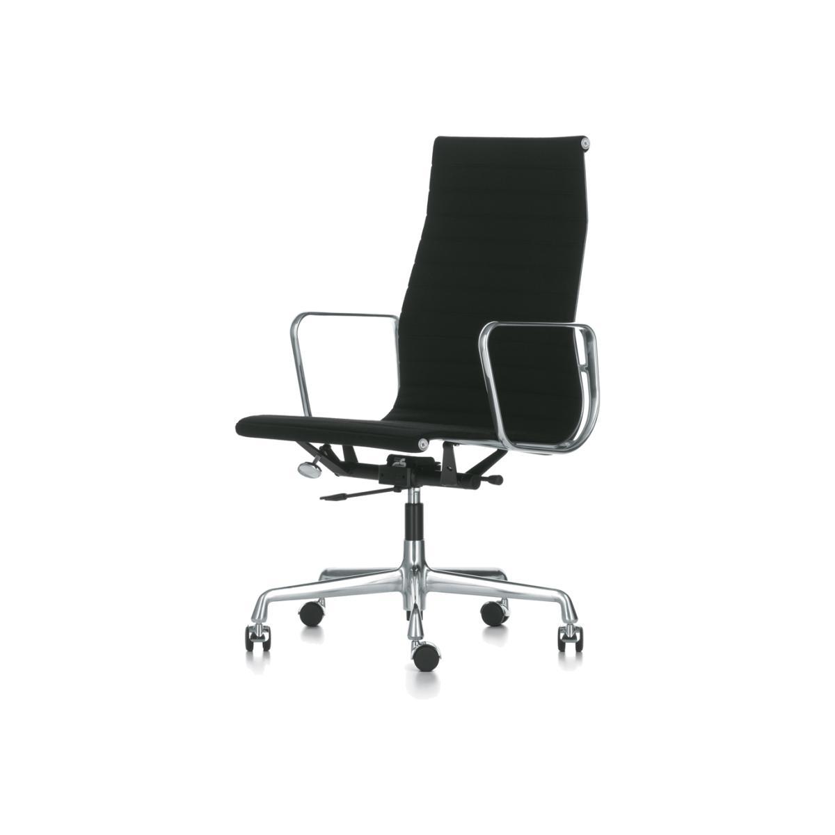 Offering superb comfort, the EA 119 Swivel Office Chair is the ultimate seating for any modern workspace, designed by Charles and Ray Eames in 1958.Part of the iconic Eames Aluminium Group, this EA 119 Swivel Office Chair is one of the task chairs that makes up this range, originally designed by Charles and Ray Eames for an art collector's private residence. A departure from their signature seat-shell style, these designs were leather and fabric stretched between an aluminium frame to create comfortable seating without elaborate upholstery. Upholstered in an array of colours, the Eames EA 119 chair is covered with Vitra Hopsak fabric: a highly durable flat plain-weave polyamide fabric in duotone colours to add another dimension to its aesthetic. Characterised by a high backrest for added comfort, the Eames EA119 chair swivels for simple manoeuvring and has a specifically designed tilt mechanism that can be adjusted to the weight of the user for optimum comfort. With a narrower seat and adjusted sitting position, the Eames EA 118 is the perfect chair for table-oriented activities.