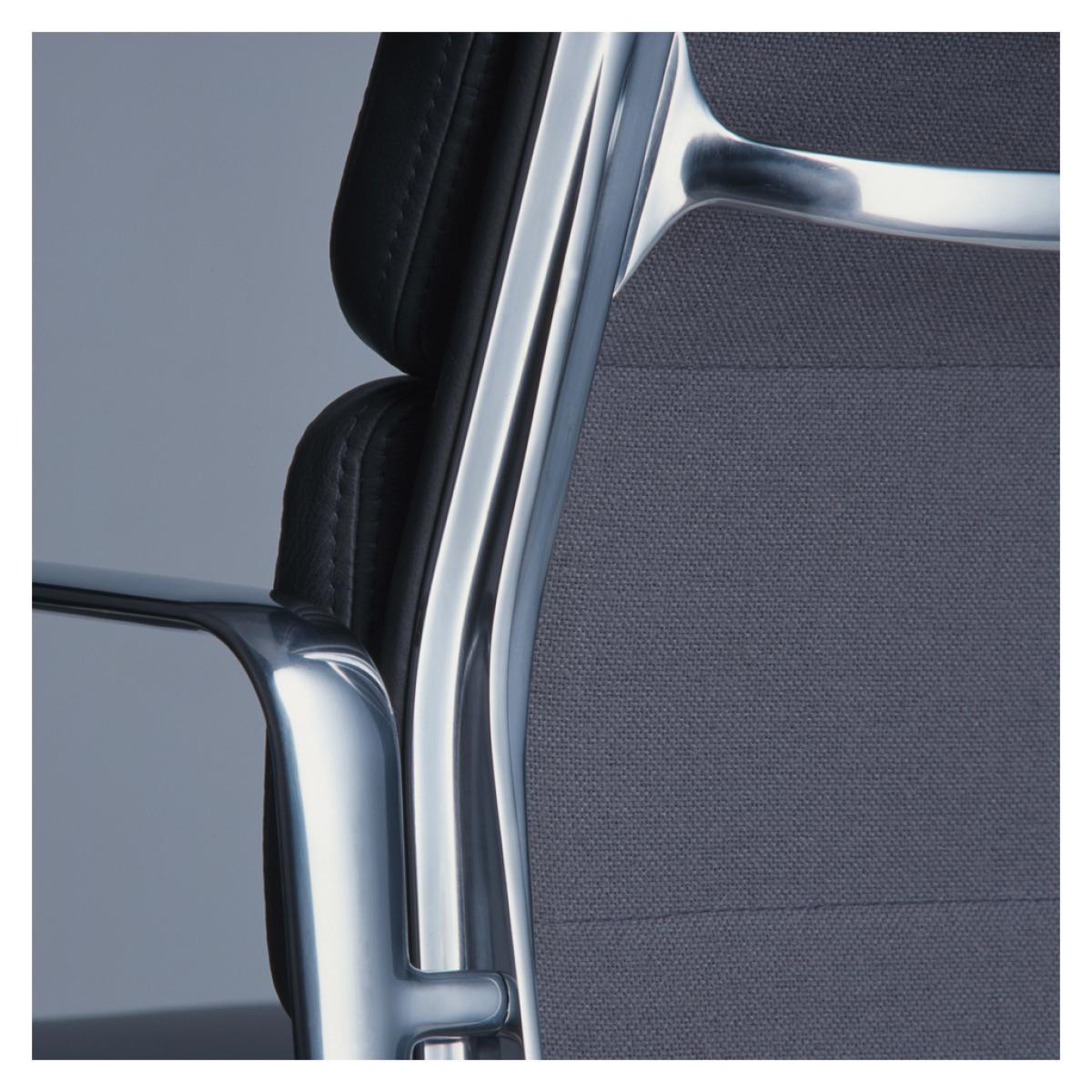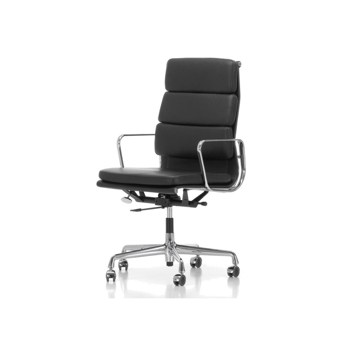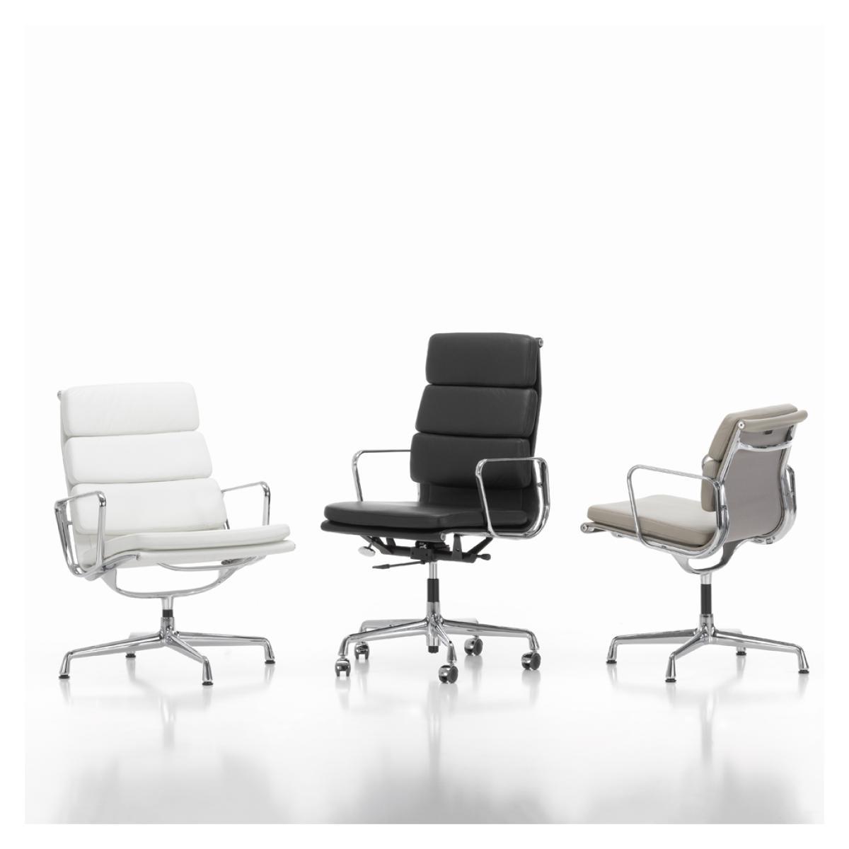 Offering superb comfort, the EA 219 Soft Pad Office Chair is a decadent seating solution for any modern workspace, designed by Charles and Ray Eames in 1969. Part of the iconic Eames Soft Pad Group, this EA 219 Office Chair is one of the office chairs that makes up this range, originally designed by Charles and Ray Eames in 1969. With similar frame styles to the Eames Aluminium Group, the Eames Soft Pad Group is defined by its sewn-on cushions that create a supple and luxurious contrast to the clean-lined silhouette of the base. Upholstered in an array of colours, the Eames EA 219 chair is covered with Vitra leather: a robust cowhide, embossed with an even grain pattern for an easily maintained finish. Characterised by a high backrest for superior comfort, the Eames EA 219 chair swivels for simple manoeuvring and has a specifically designed tilt mechanism that can be adjusted to the weight of the user for optimum comfort.