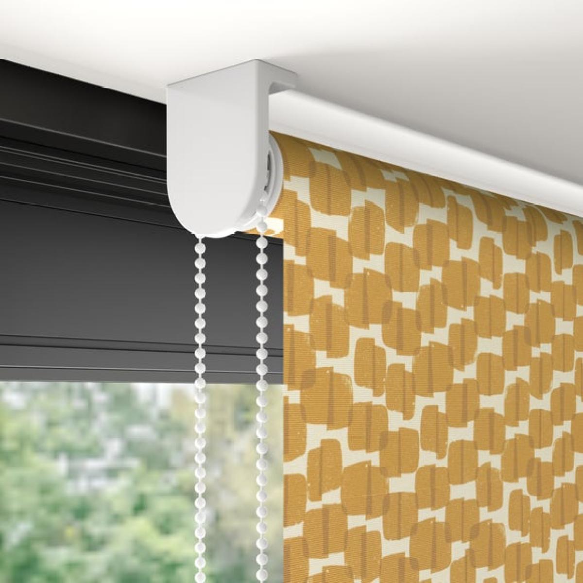 Get 15% off selected Made to Measure blinds when you buy Made to Measure curtains and blinds together. *Use code M2M15OF F (Ts & Cs apply). * Abstract geometric print with overlapping rectangle design * Daylight * Available in different colourways * Premium polyester composition * Choose fitting type, chain side, chain colour, and roll direction * Supplied with all fixings for simple installation Modern and fun, the Eades All Over Daylight roller blind adds a stylish and unique touch to your decor. It features an abstract geometric print with an overlapping rectangle design. Available in different colourways, you can select a colour to match your decor. Crafted from premium, daylight polyester, the blind provides privacy while maximising natural light. Customise to your needs and style by picking a side for the operating chain, chain colour, fitting type, and roll direction. All fixings are included for simple and efficient installation. Please note: The actual blind fabric will be approximately 35mm narrower than the overall blind width, this is to accommodate the brackets and operating mechanism.