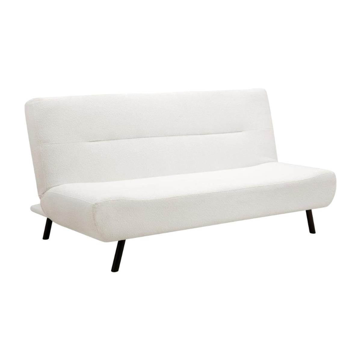 Introducing Eadie, a boucle fabric sofa bed in white fabric. It seats up to three people and converts into a small double sleeper. Eadie features generously filled, padded cushions for your comfort with a soft boucle fabric finish. Convertible design, this sofa bed has a simple clic-clac mechanism that allows you to swiftly and simply transform from a sofa to a bed. Keep your sofa looking great by vacuuming it once a week on a low setting using the upholstery attachment of your vacuum cleaner or using a soft hand brush to fluff up the fibres. Regularly plump and fluff cushions to maintain their shape and prevent sagging. Be mindful of food and drinks around your sofa bed. If spills occur, clean them up immediately to prevent stains. Overall Product Dimensions: W185cm x D98cm x H90cm / Sleeping Area:W185cm x D115cm x H40cm. All sizes are approximate; please allow for small variations. Package Dimension: Box 1 W185cm x D118cm x H24cm / Total Packaging Weight: 36kg. All sizes are approximate; please allow for small variations. Delivered by our friendly couriers within 1-3 working days. The courier will deliver to the main door of the building only on an all-day 7 am to 7 pm service, with no time slots provided.