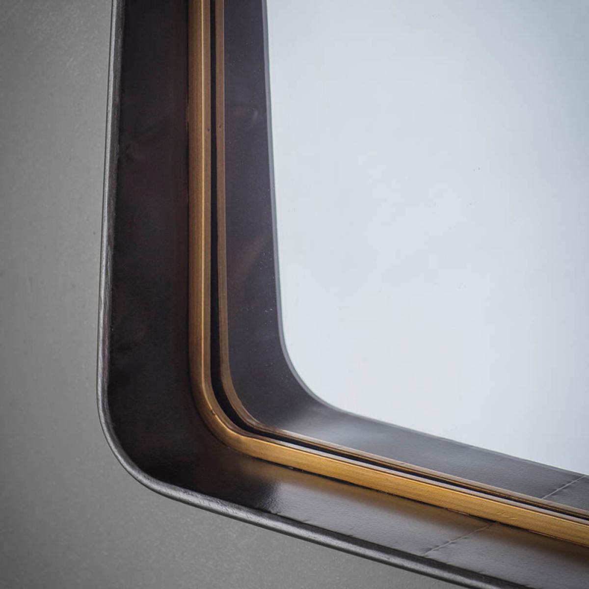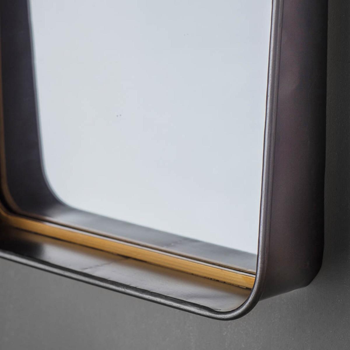 Unique tapered frame with a two tone finish and rectangle center mirror.