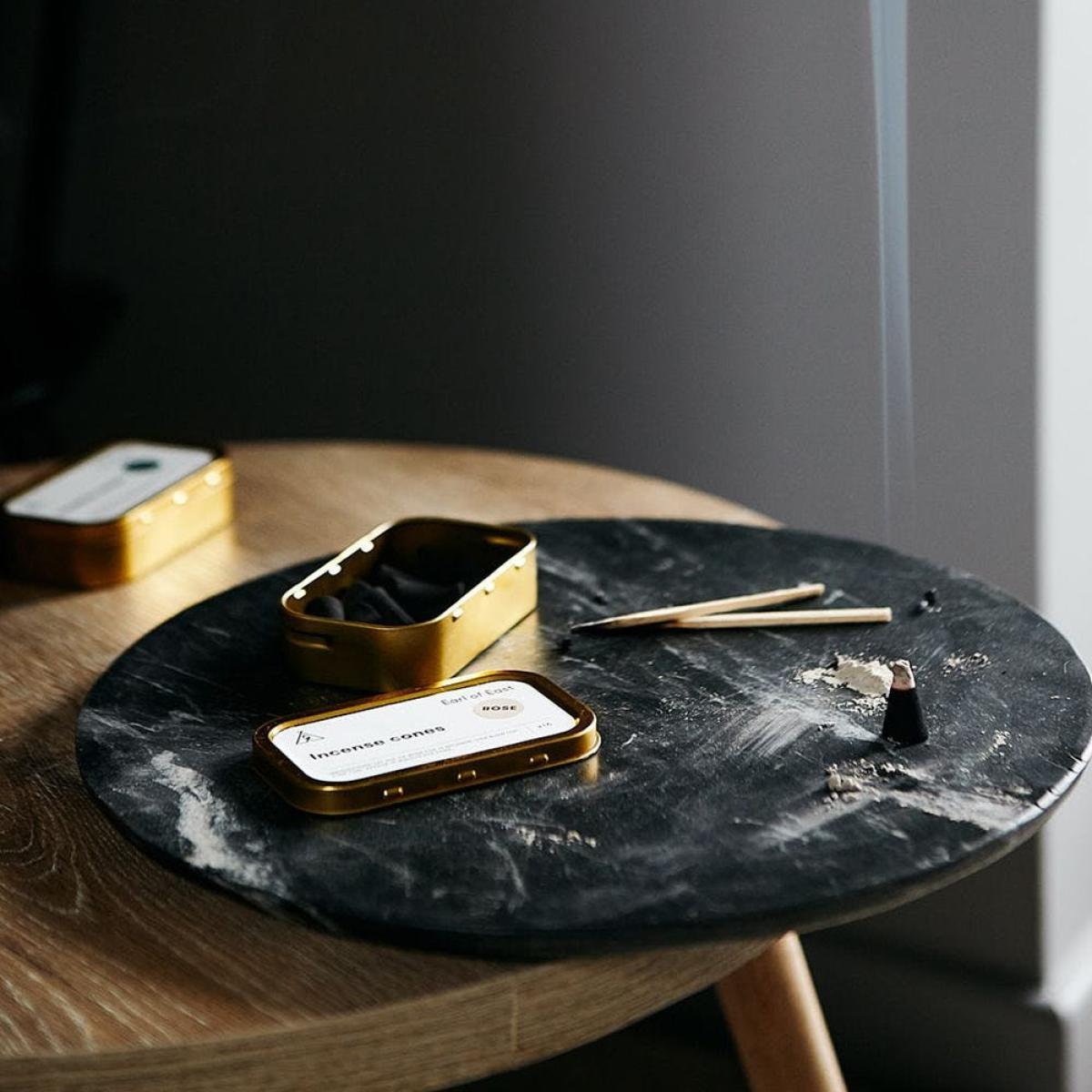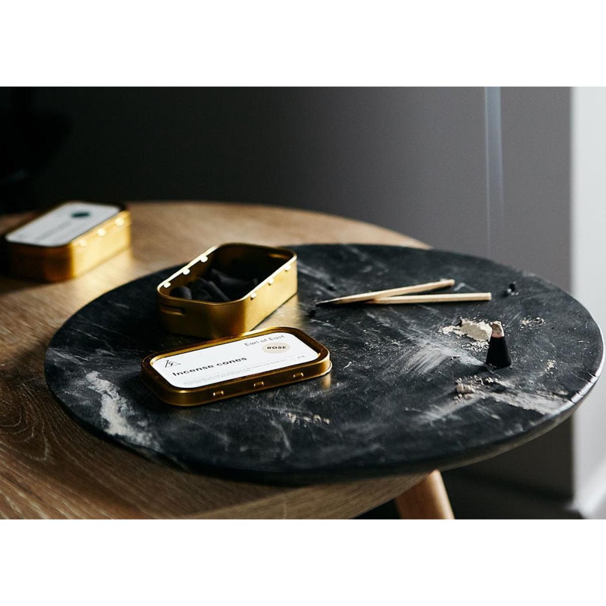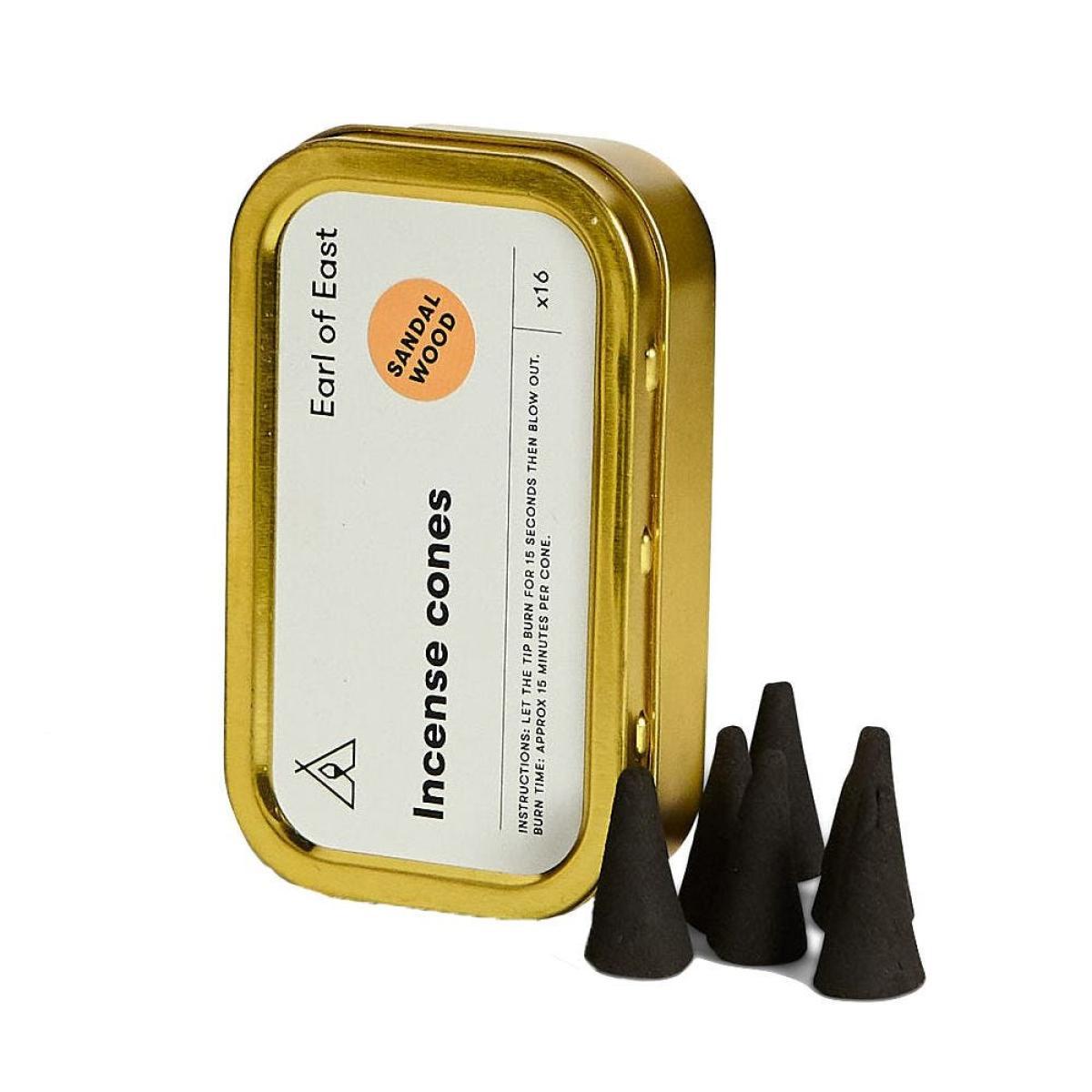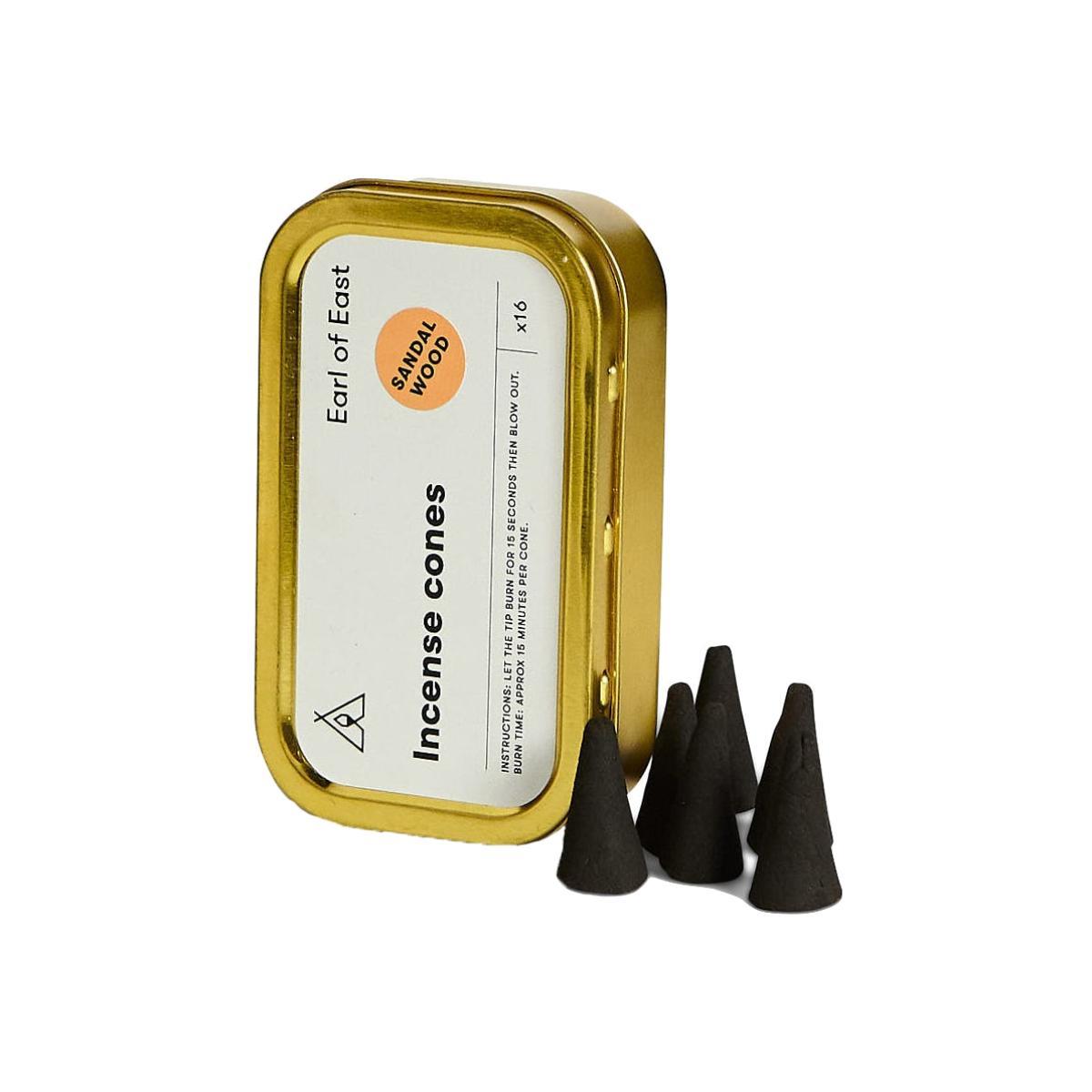 These incense cones are an easy way to create a relaxing atmosphere at home and cleanse your space of negative energy. Hand-dipped by our friends at Earl of East, the incense cones are available in a choice of three healing scents ' sage, sandalwood and rose. With 16 cones per pack and a burn time of 15 minutes each, these incense cones can be used whenever you need a quick moment of peace. To use, simply light the tip on a heatproof dish and blow out after 15 seconds.