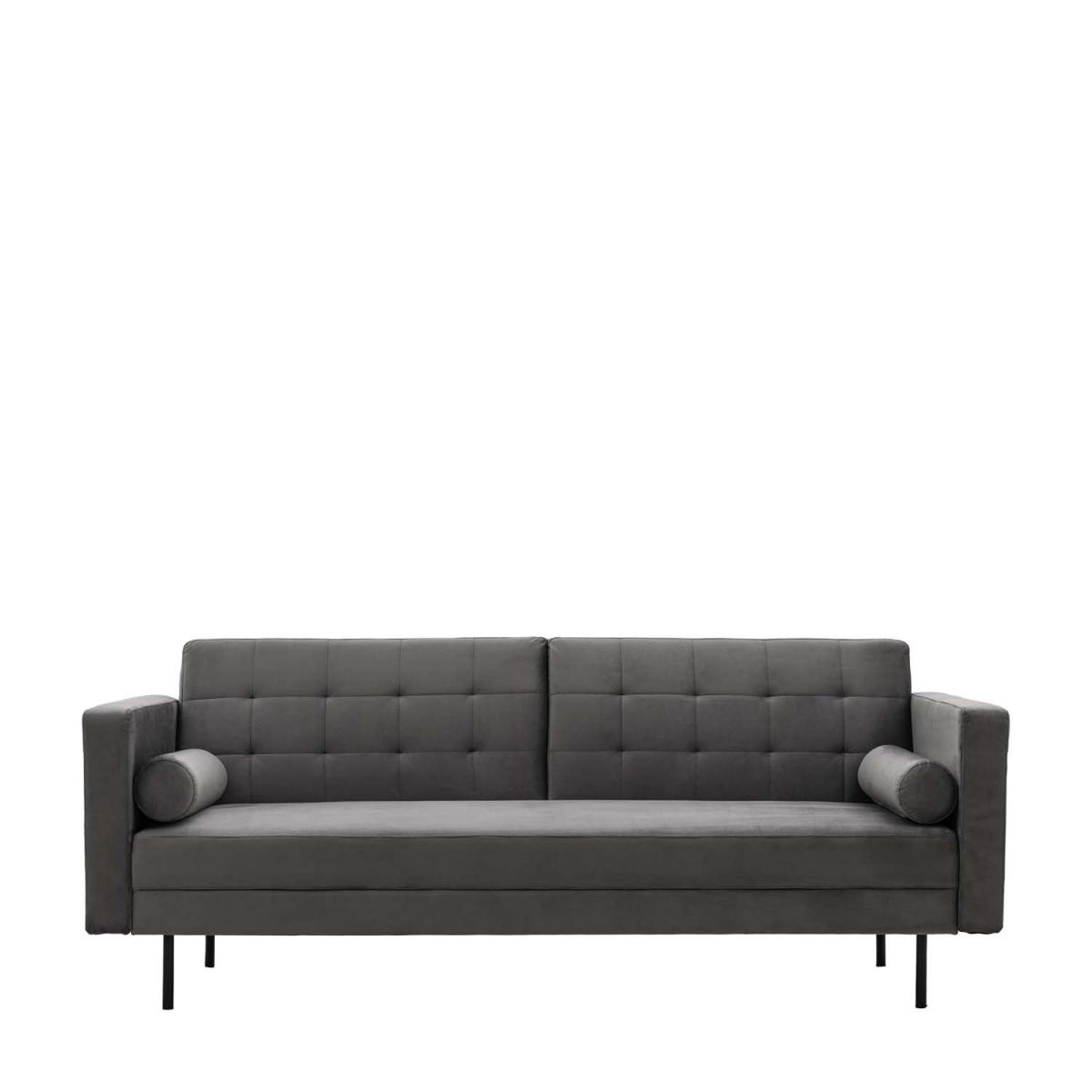 The Earlston sofa bed offers practical contemporary design. Slim straight arms are softened by the round grey bolster cushions for supreme comfort. Ideal for when guests stay overnight, the back quickly and simply folds down to create a bed.