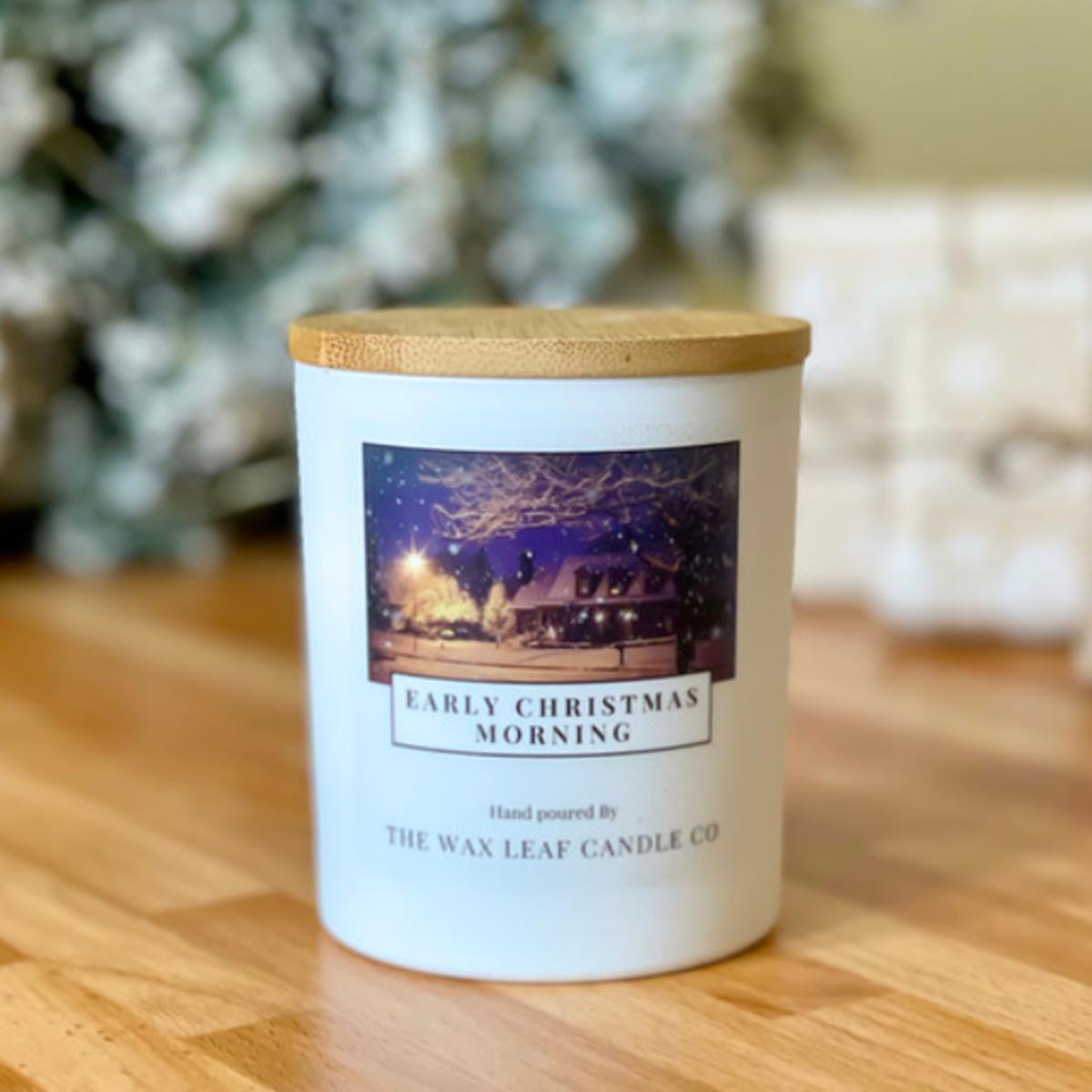 Early Christmas Morning Wooden wick Christmas Candle - White / Photographic Label