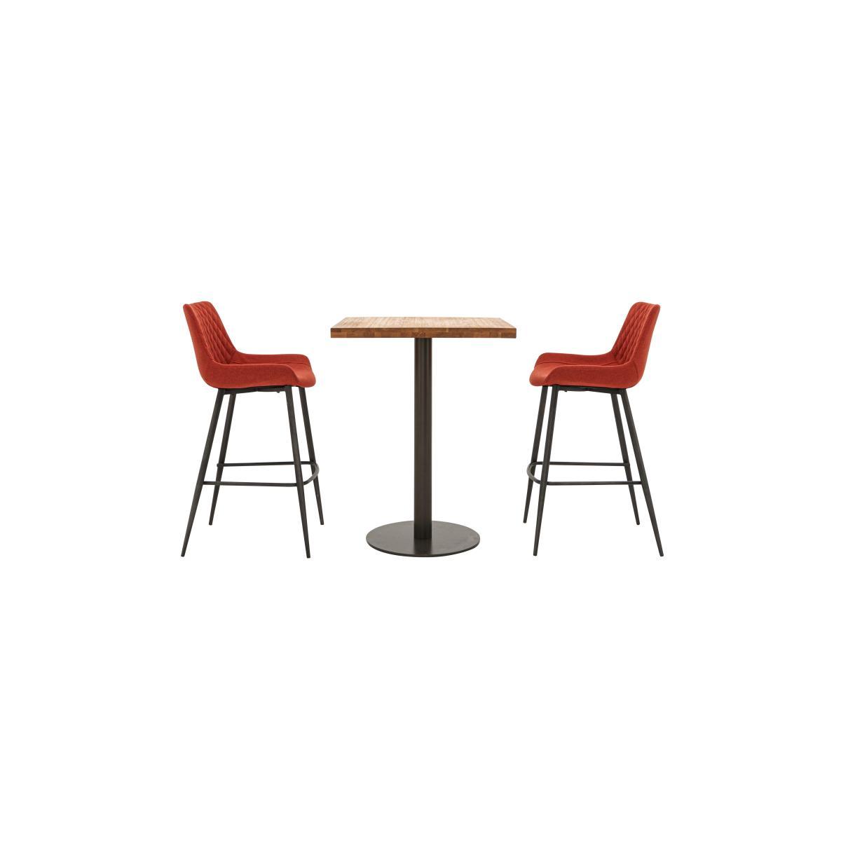 Modern, versatile and excellent value, Earth combines solid oak and oak veneer surfaces with powder-coated steel legs in a collection of beautifully-crafted industrial-style furniture. Dining tables are available in two sizes and optional extension leaves create a huge range of size possibilities. Choose either an upholstered retro-style dining chair or practical bench seating – or mix and match the two for a comfortable and contemporary look. Complete your dining room with a choice of sideboards and continue this on trend theme in the living room with useful shelving and stylish occasional pieces. Great-value on trend industrial style for contemporary homes. Compact table has solid oak top and grey powder-coated steel base. With 2 low-back retro bar stools in a choice of bold colours. Looking for the perfect bar dining set? One that's perfect for casual meals as well as a grownup dinner party? Just take a look at the Earth bar table and 2 Rocket bar stools set. This fantastic-value stylish dining set features the very on trend Earth bar table. With its solid oak top and grey powder-coated steel pedestal base with circular footplate, this bar table perfectly channels two key elements of industrial style – wood and metal – and is very well made, too. This set also includes two fabulous Rocket bar stools. You’ll love the retro feel of the low backs, curved seats and slender metal legs with footrests. Choose from a range of bright and bold fabric colours, or opt for ever-stylish grey. The upholstery is nicely finished with diamond-effect quilting on the inside backs and a stitched seam on the seats. The Earth bar table and 2 Rocket bar stools set is part of the great-value Earth living and dining room furniture collection at Furniture Village. Did you know?. Because oak is natural with characterful knots and markings, every piece in the Earth collection is unique.