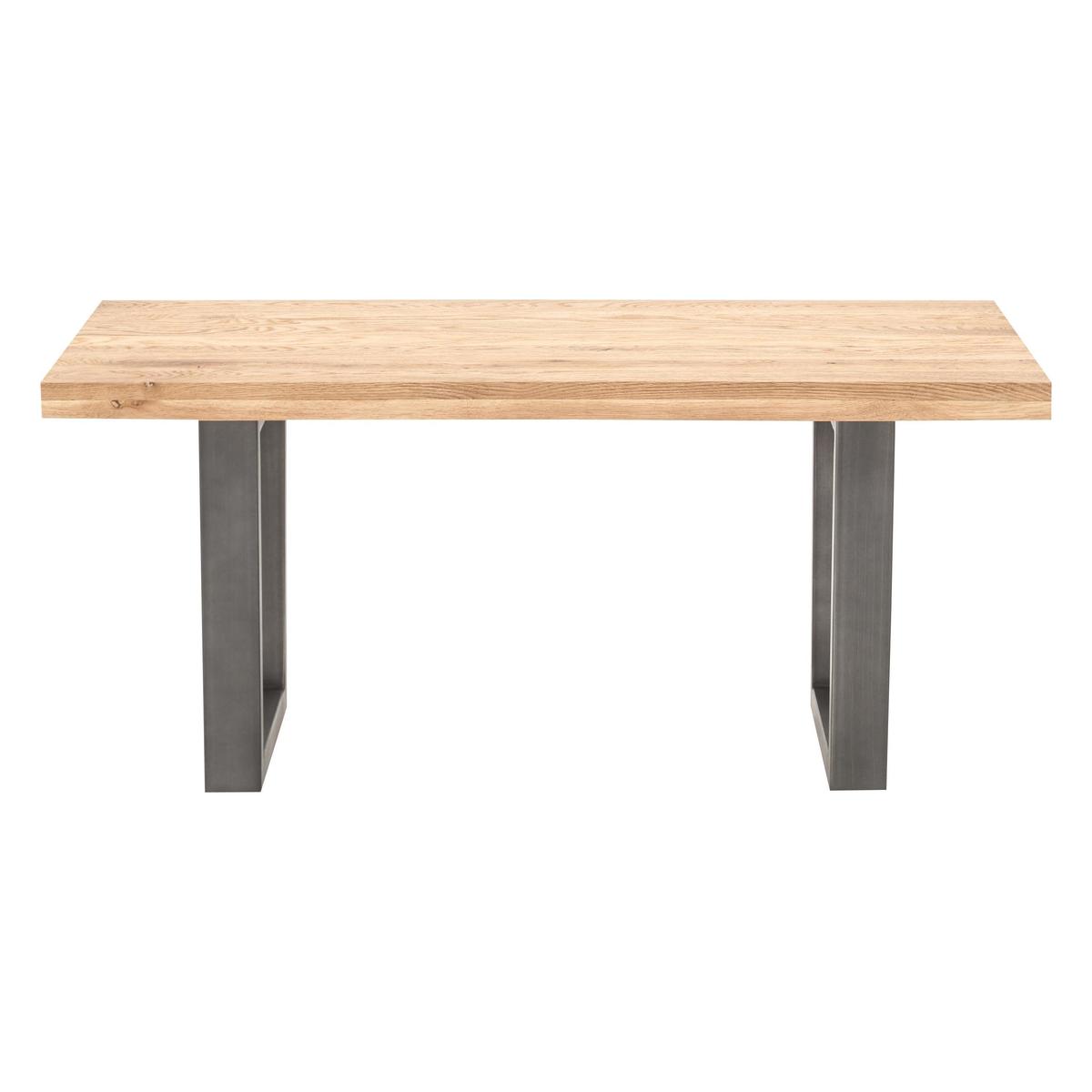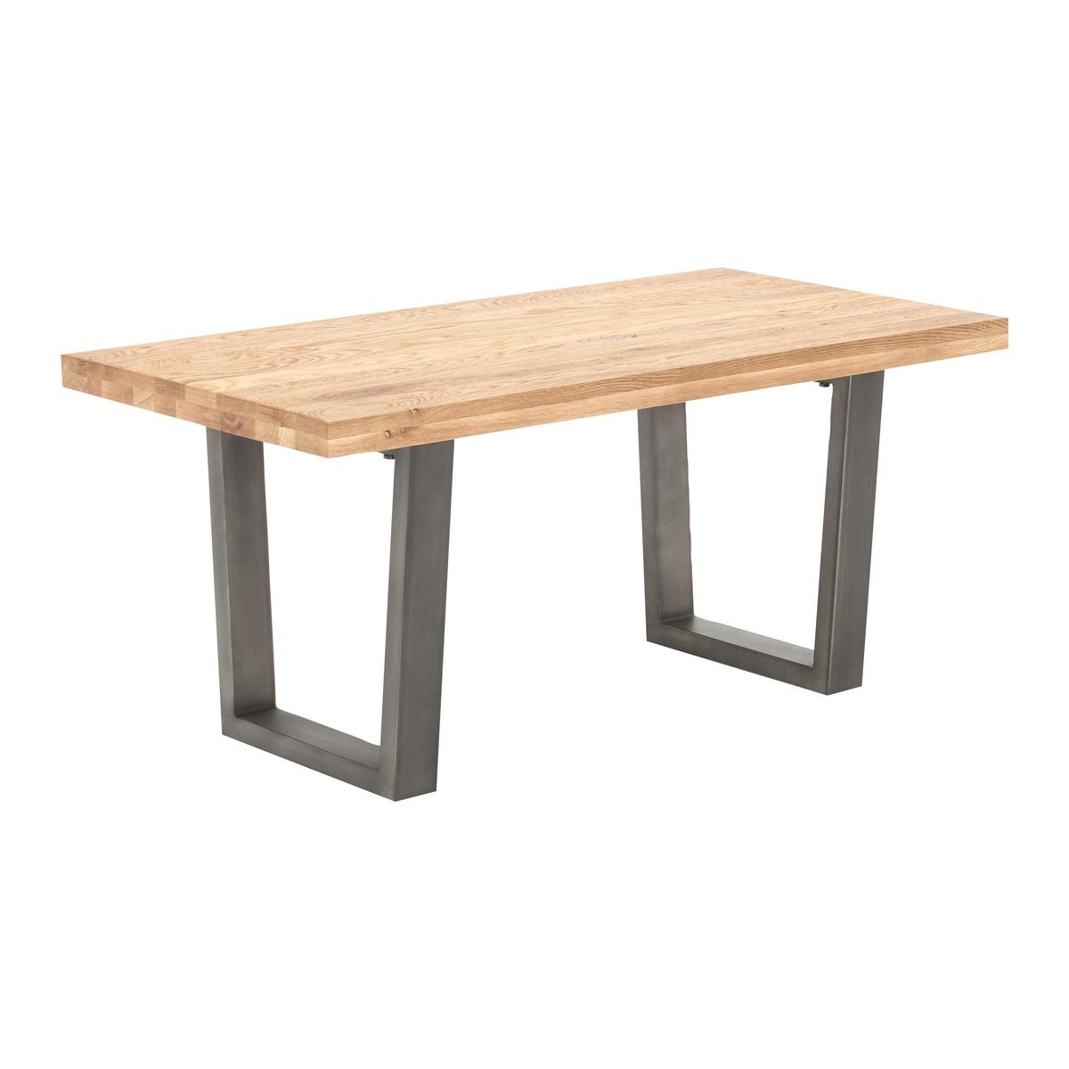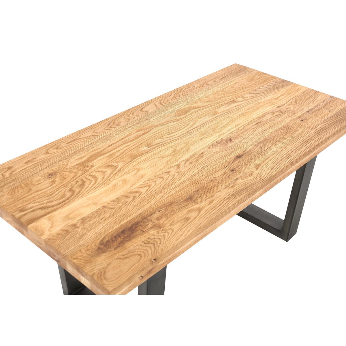 Modern, versatile and excellent value, Earth combines solid oak and oak veneer surfaces with powder-coated steel legs in a collection of beautifully-crafted industrial-style furniture. Dining tables are available in two sizes and optional extension leaves create a huge range of size possibilities. Choose either an upholstered retro-style dining chair or practical bench seating – or mix and match the two for a comfortable and contemporary look. Complete your dining room with a choice of sideboards and continue this on trend theme in the living room with useful shelving and stylish occasional pieces. Simple and structured, the great value Earth coffee table perfectly sums up the on trend industrial style, with its clean lines and focus on strong and sturdy materials. This extremely well-made coffee table has a solid oak top and U-shaped legs made of powder-coated steel in a fashionable dark grey. Generously proportioned, this unfussy piece provides a good sized surface for displaying books and magazines or even playing board games. The Earth coffee table is one of several occasional and storage pieces in the extensive Earth collection and coordinates perfectly with the Earth lamp table and the Earth TV unit. The range also includes two sizes of a fantastically versatile dining table with optional extension leaves that allow you to create the perfect dining table for you and your family. Did you know?. Because oak is natural with characterful knots and markings, every Earth coffee tableis unique.