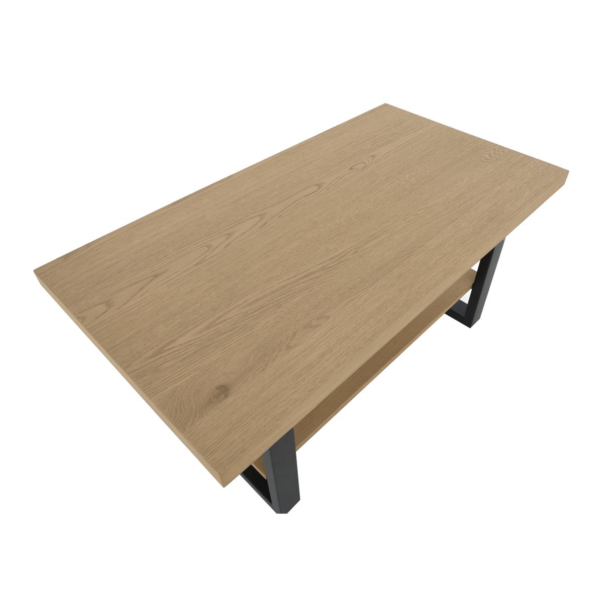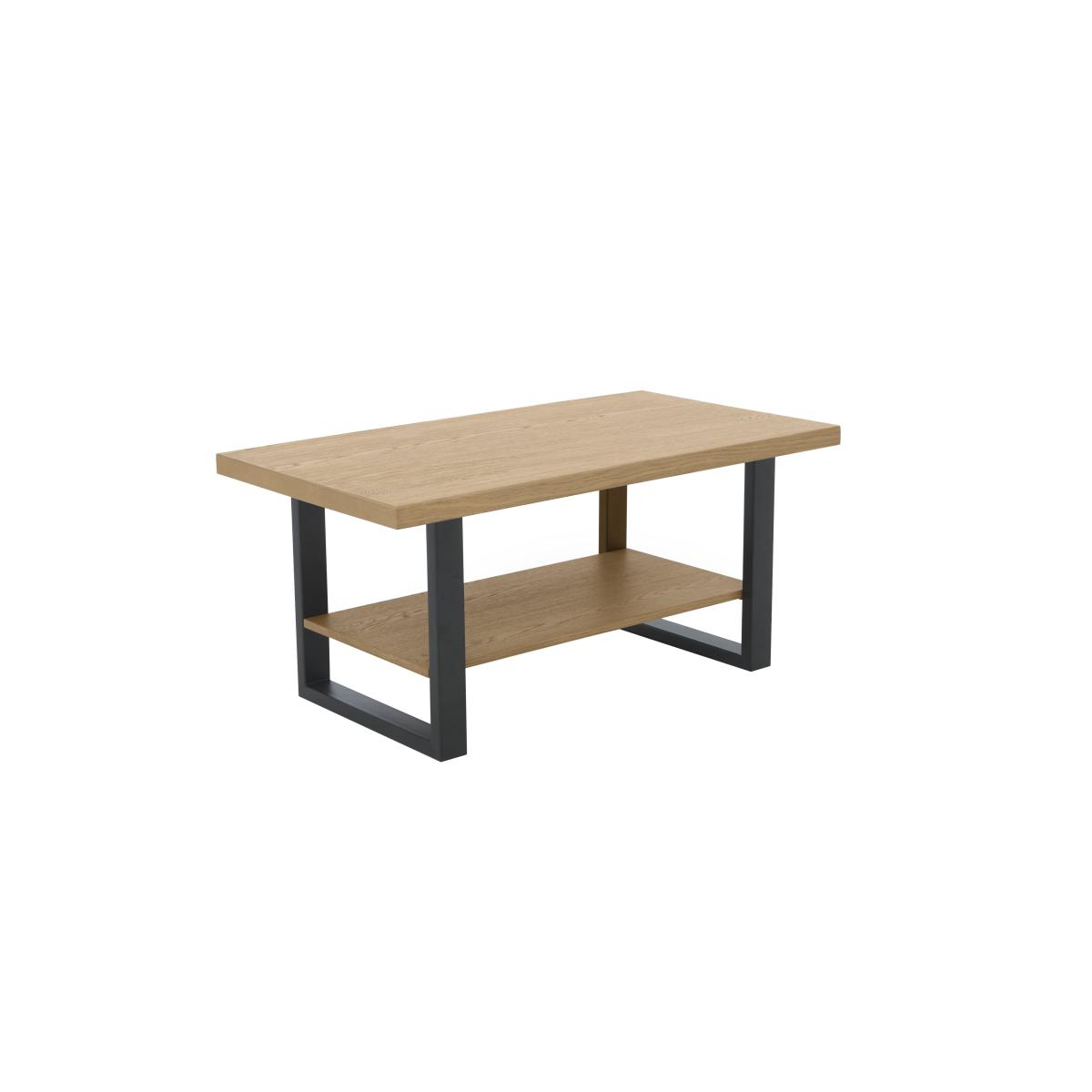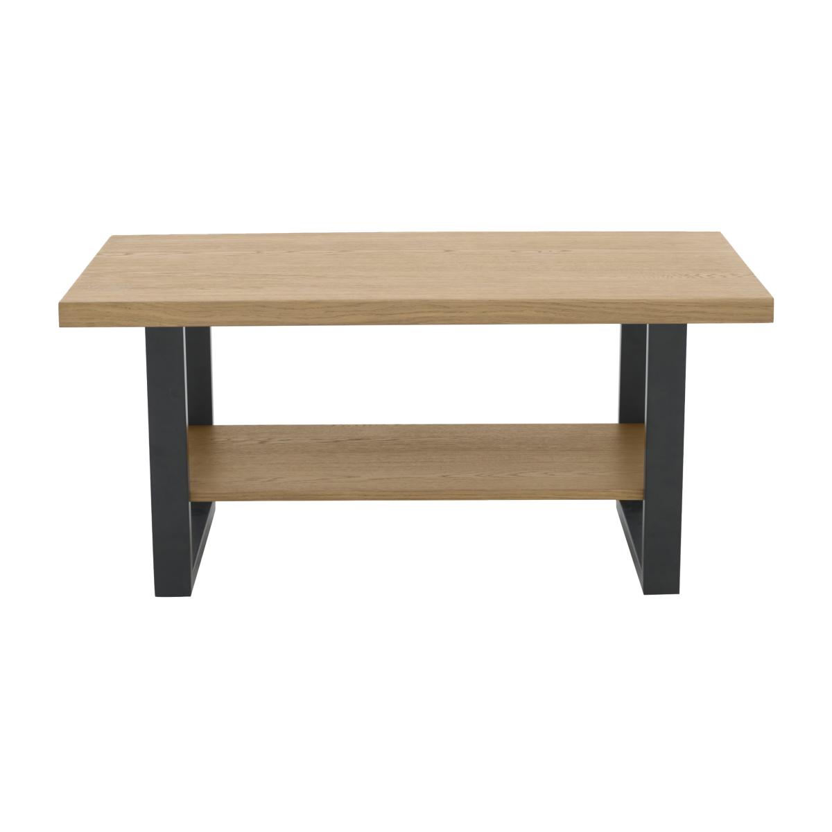 Modern, versatile and excellent value, Earth combines solid oak and oak veneer surfaces with powder-coated steel legs in a collection of beautifully-crafted industrial-style furniture. Dining tables are available in two sizes and optional extension leaves create a huge range of size possibilities. Choose either an upholstered retro-style dining chair or practical bench seating – or mix and match the two for a comfortable and contemporary look. Complete your dining room with a choice of sideboards and continue this on trend theme in the living room with useful shelving and stylish occasional pieces. Put this industrial oak and metal coffee table front and centre and enjoy functionality as well as fantastic style. The lower shelf doubles the surface area so it’s great for a smaller space. Why you'll love it Cool industrial style at a great-value price. Solid oak with a rustic wire-brushed and oiled finish. Useful shelf provides extra living room storage space. Metal U-shaped legs have a grey powder-coated finish. A Furniture Village exclusive. This coffee table with shelf is part of our Earth range. What you need to know Made of solid oak and metal. Every piece of natural wood has unique marks, knots and colour variation. It is normal for knots to be filled. Avoid placing in direct sunlight or close to a heat source. We recommend using coasters and placemats at all times. Use a clean, damp cloth to clean the oak top. Apply wax periodically to protect the surface.