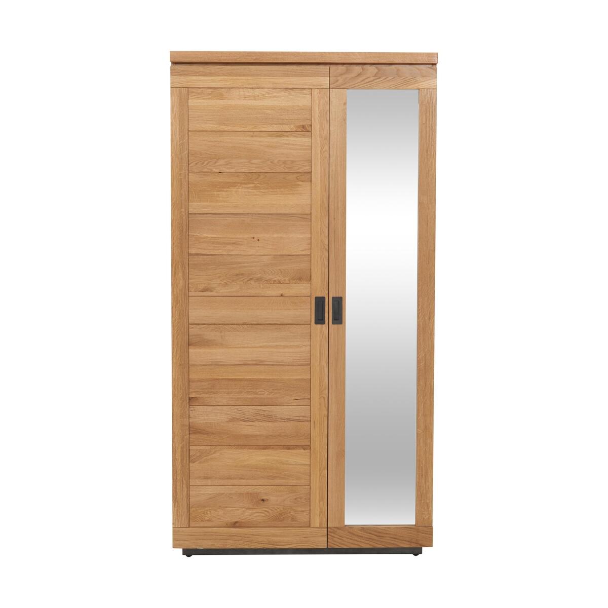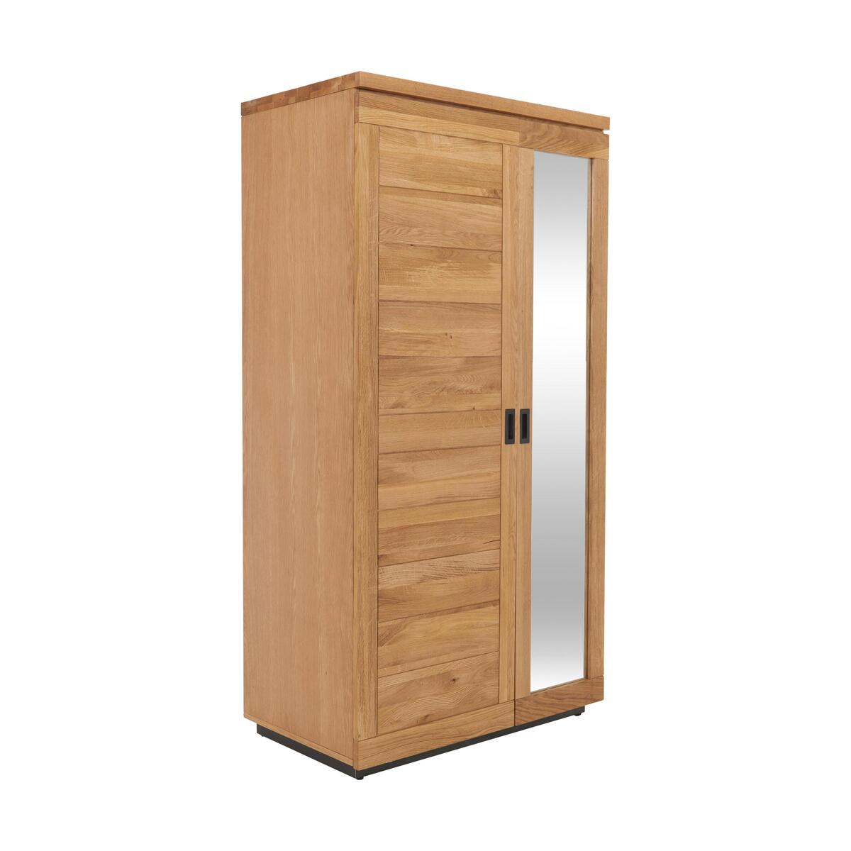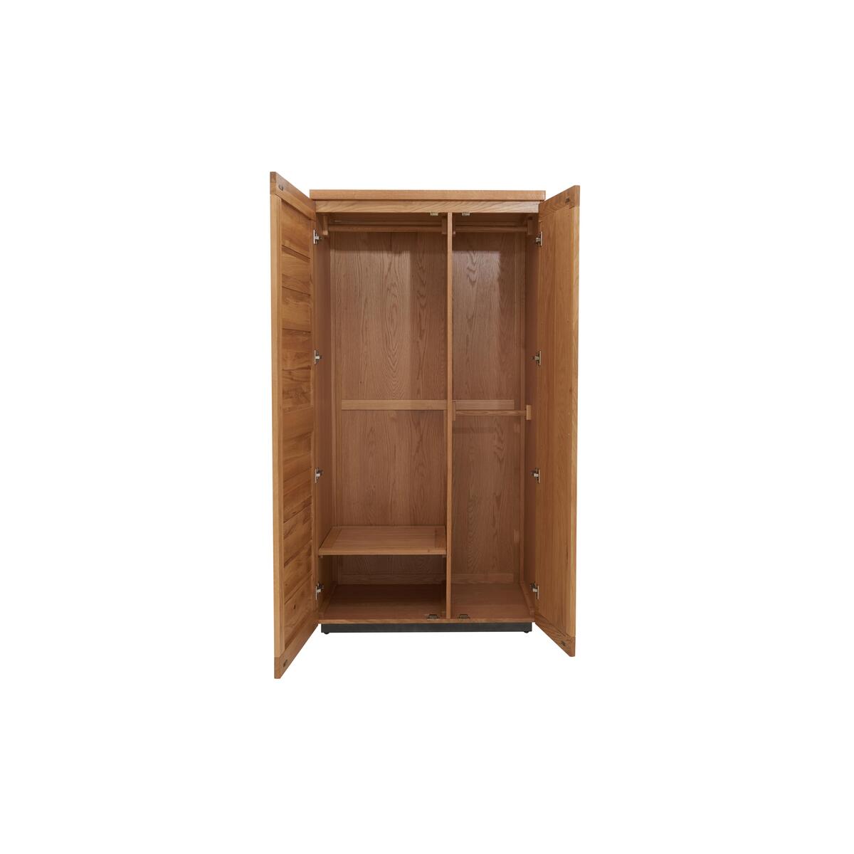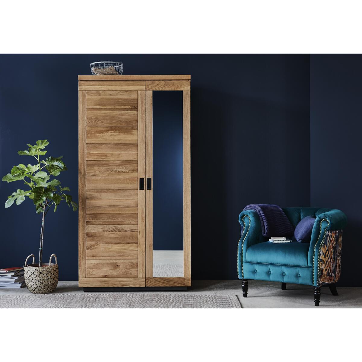 Rustic meets modern in this cool industrial- style range High- quality craftsmanship in oak, oak veneer and metal Practical, stylish and great value for money If youre drawn to fashionable industrial- style furniture, youll be glad to hear that this popular look has made its way to the bedroom. The Earth double wardrobe offers practical storage and a lovely natural timber look gorgeous panels of beautifully- finished oak and oak veneer. Pleasingly asymmetric, this two- door wardrobe features a useful mirrored door and is finished with cool retro- style metal handles. It sits on a dark grey powder- coated metal plinth. Inside, things are just as interesting. Behind the soft- closing doors, youll find exceptionally useful storage space a substantial hanging space above a removable lower shelf on the left, and two additional hanging rails on the right. Part of the Earth collection of bedroom, dining and living furniture, the Earth double wardrobe is available at a great- value price. The Earth bedroom collection also includes a fabulous bedframe, chests of drawers, a dressing table and an ottoman trunk. Did you know? : Because oak is natural with characterful knots and markings, every piece in the Earth bedroom collection is unique. WARNING! Furniture can tip over unexpectedly and cause injury. This item must be fixed to a wall using the anti- tip kit provided. Be sure to use the correct wall fixings suitable for the walls in your home. Furniture Village is not able to fix anti- tip devices for you. Seek professional advice if you are unsure.