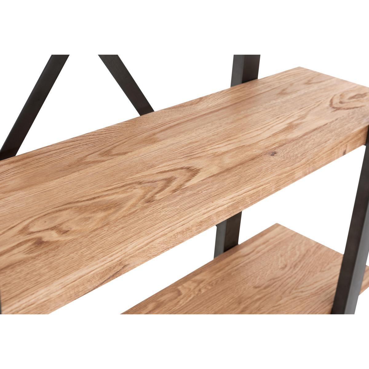 Modern, versatile and excellent value, Earth combines solid oak and oak veneer surfaces with powder-coated steel legs in a collection of beautifully-crafted industrial-style furniture. Dining tables are available in two sizes and optional extension leaves create a huge range of size possibilities. Choose either an upholstered retro-style dining chair or practical bench seating – or mix and match the two for a comfortable and contemporary look. Complete your dining room with a choice of sideboards and continue this on trend theme in the living room with useful shelving and stylish occasional pieces. The Earth open shelving unit is a striking combination of wood and metal in the on trend industrial style – and at fantastic value price. With four fixed shelves, this piece offers plenty of space for books, framed photos and favourite objects. Shelves are made of solid oak and the frame is smooth grey powder-coated steel. The X-shaped back piece adds support as well as visual interest. The affordable Earth open shelving unit is part of the extensive Earth furniture collection, which offers so many ways to bring home the popular industrial look at a great value price. Pair it with one of three styles of sideboard or the relaxed, contemporary Earth coffee table and Earth lamp table. Did you know?. Because oak is natural with characterful knots and markings, every Earth open shelving unitis unique.