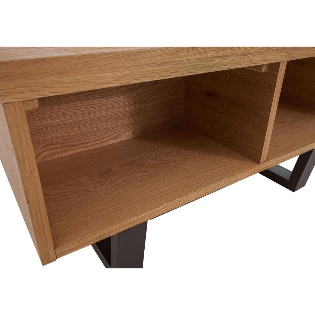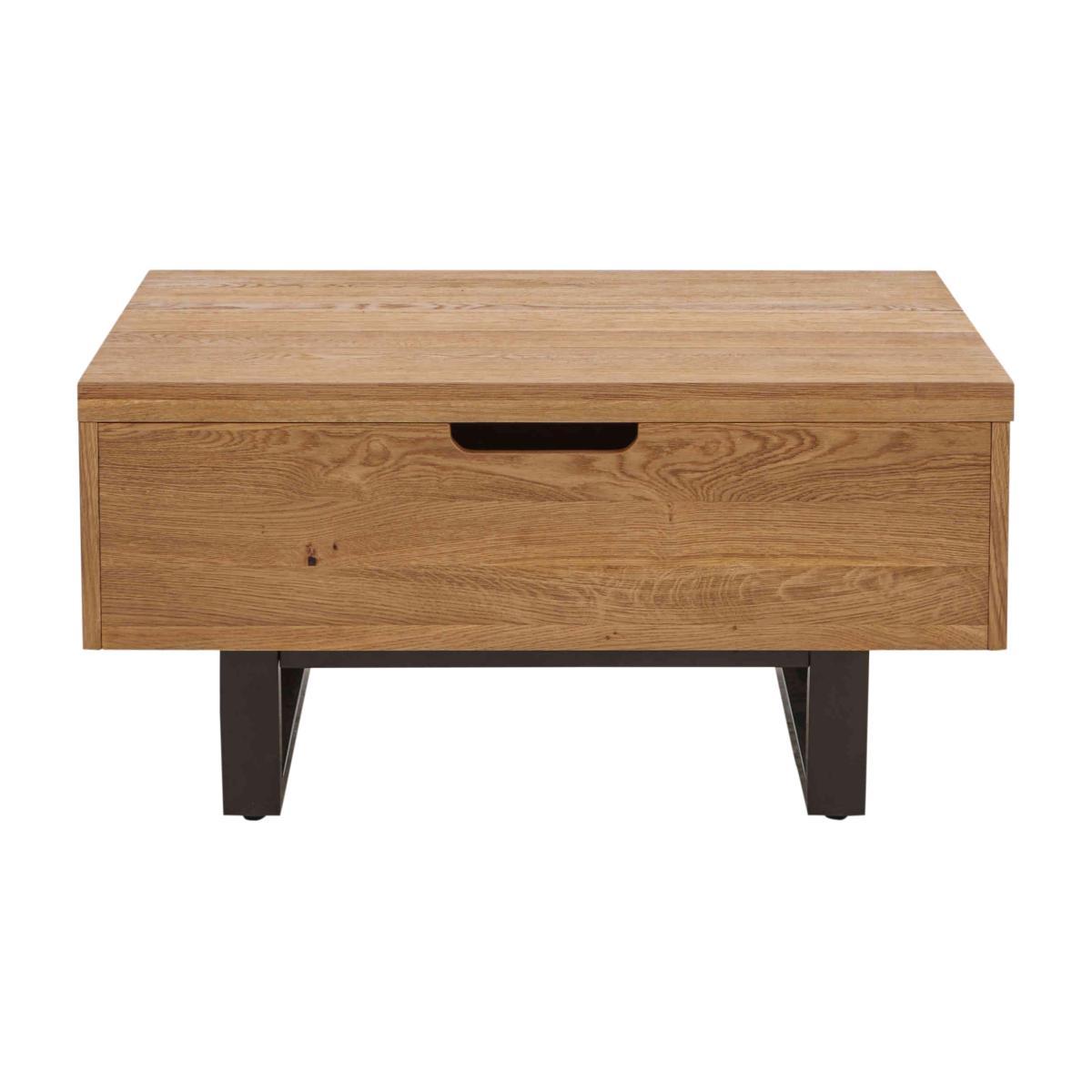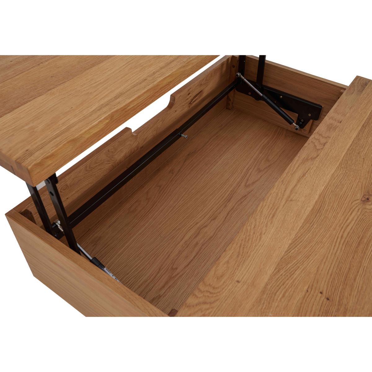 Modern, versatile and excellent value, Earth combines solid oak and oak veneer surfaces with powder-coated steel legs in a collection of beautifully-crafted industrial-style furniture. Dining tables are available in two sizes and optional extension leaves create a huge range of size possibilities. Choose either an upholstered retro-style dining chair or practical bench seating – or mix and match the two for a comfortable and contemporary look. Complete your dining room with a choice of sideboards and continue this on trend theme in the living room with useful shelving and stylish occasional pieces. It’s a coffee table. It’s a storage unit. It's a desk. This ultra-cool coffee table is everything and more, and super-practical for a smaller living room. Stylishly crafted from solid oak with a contemporary urban vibe. Why you'll love it. Multi-functional coffee table with storage and lift-up desk space. Modern industrial style at a fantastic-value price. Solid rustic oak with chunky powder-coated metal legs. Excellent storage capacity with 2 alcoves and hidden compartment. Lift-up top provides a stable work surface for a laptop and paperwork. Crafted from real oak so you’ll know that it’s a one of a kind. What you need to know. As oak is a natural material, knots and markings are to be expected. Avoid placing in direct sunlight. Part of the well-crafted Earth range of dining sets and storage furniture.