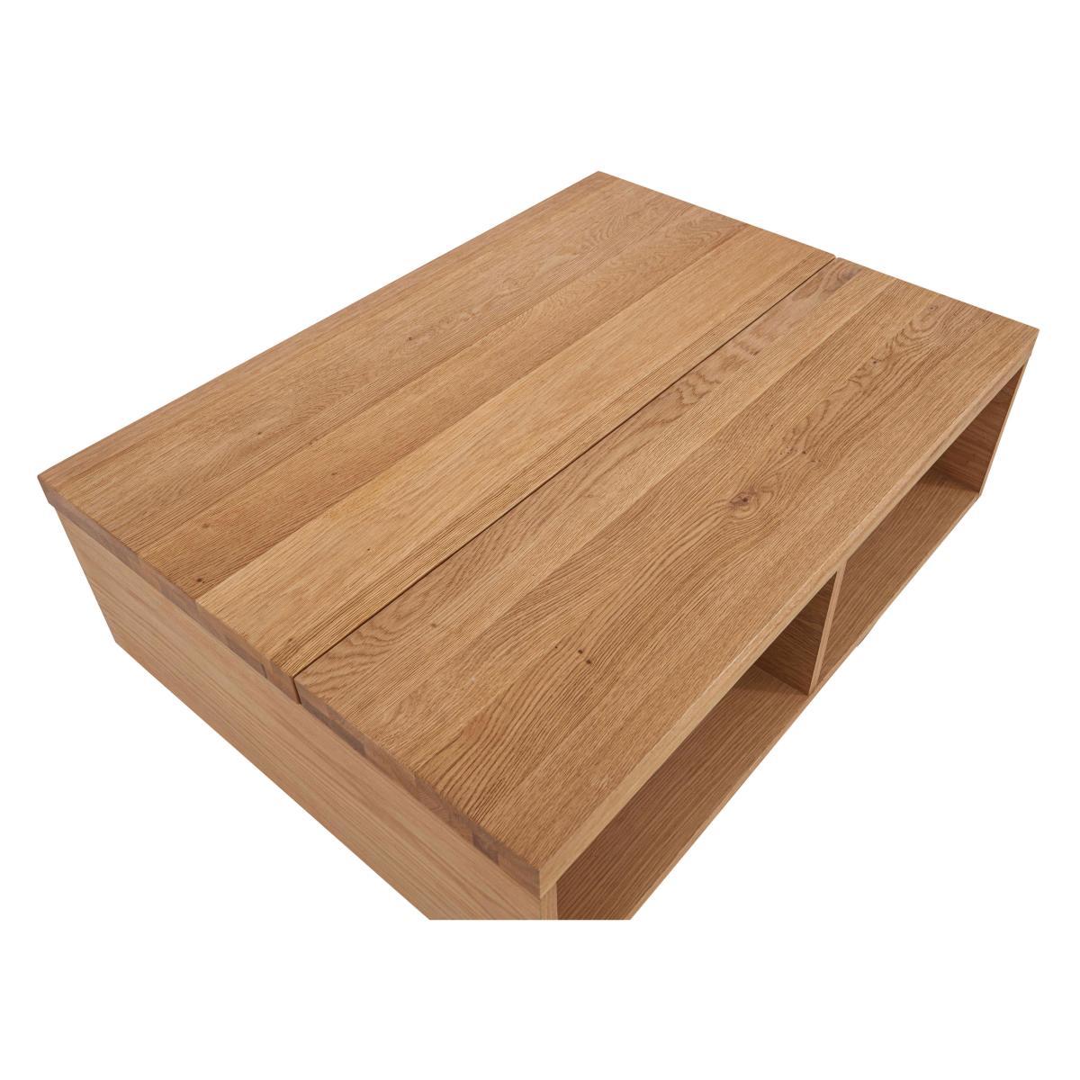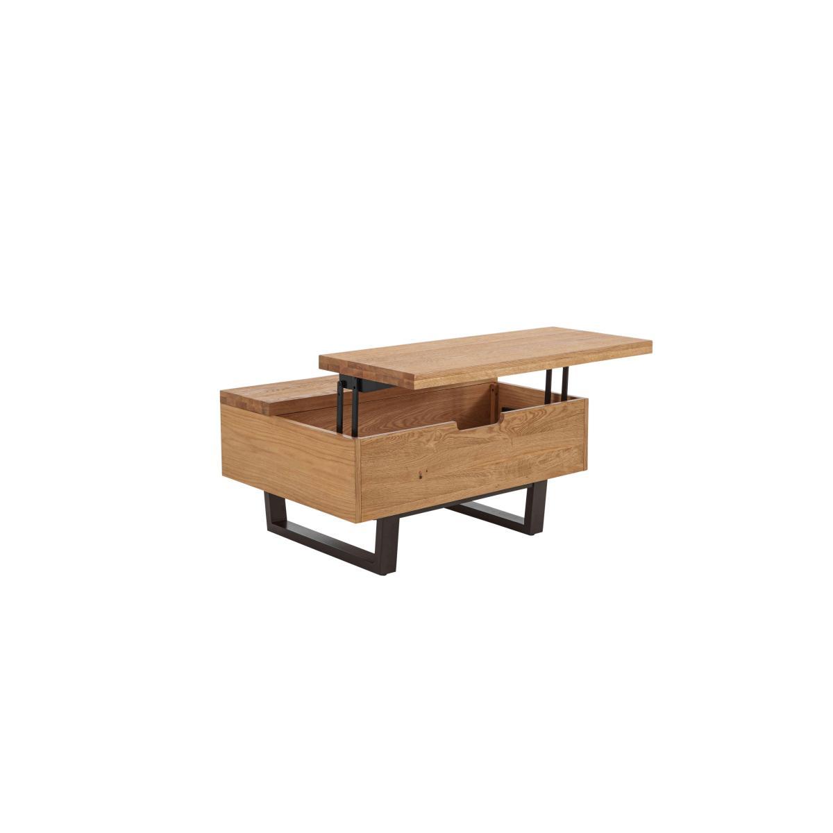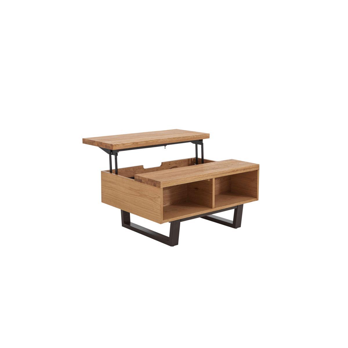 Modern, versatile and excellent value, Earth combines solid oak and oak veneer surfaces with powder-coated steel legs in a collection of beautifully-crafted industrial-style furniture. Dining tables are available in two sizes and optional extension leaves create a huge range of size possibilities. Choose either an upholstered retro-style dining chair or practical bench seating – or mix and match the two for a comfortable and contemporary look. Complete your dining room with a choice of sideboards and continue this on trend theme in the living room with useful shelving and stylish occasional pieces. It’s a coffee table. It’s a storage unit. It's a desk. This ultra-cool coffee table is everything and more, and super-practical for a smaller living room. Stylishly crafted from solid oak with a contemporary urban vibe. Why you'll love it. Multi-functional coffee table with storage and lift-up desk space. Modern industrial style at a fantastic-value price. Solid rustic oak with chunky powder-coated metal legs. Excellent storage capacity with 2 alcoves and hidden compartment. Lift-up top provides a stable work surface for a laptop and paperwork. Crafted from real oak so you’ll know that it’s a one of a kind. What you need to know. As oak is a natural material, knots and markings are to be expected. Avoid placing in direct sunlight. Part of the well-crafted Earth range of dining sets and storage furniture.