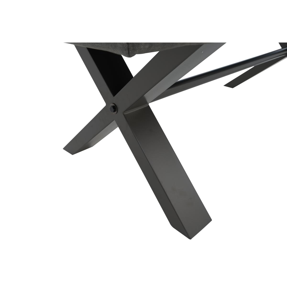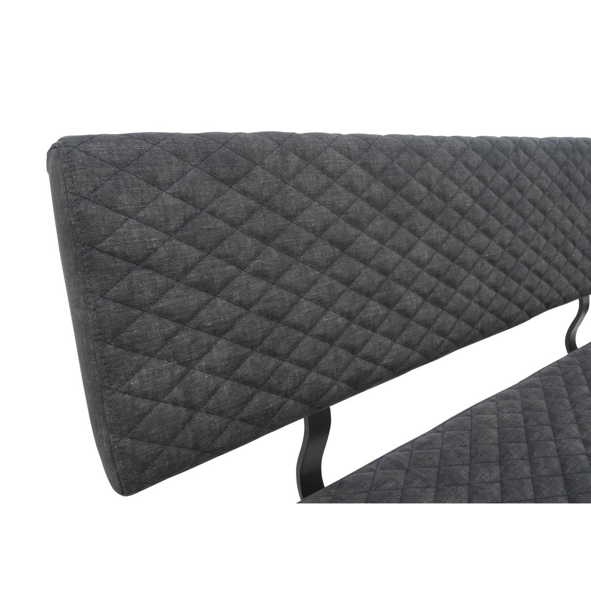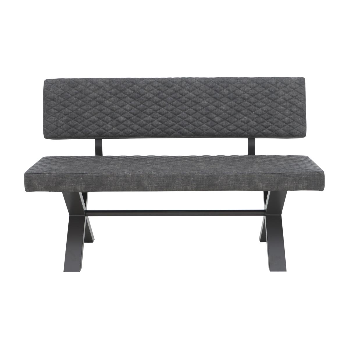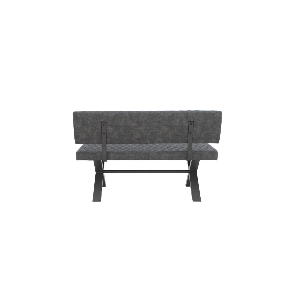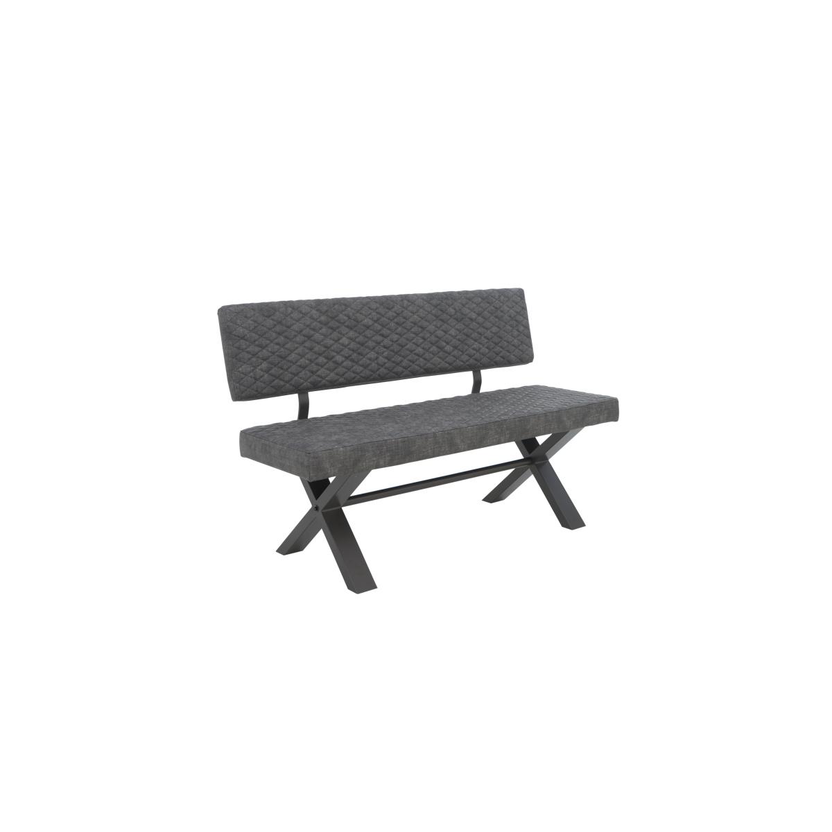 Modern, versatile and excellent value, Earth combines solid oak and oak veneer surfaces with powder-coated steel legs in a collection of beautifully-crafted industrial-style furniture. Dining tables are available in two sizes and optional extension leaves create a huge range of size possibilities. Choose either an upholstered retro-style dining chair or practical bench seating – or mix and match the two for a comfortable and contemporary look. Complete your dining room with a choice of sideboards and continue this on trend theme in the living room with useful shelving and stylish occasional pieces. Style meets comfort meets practicality in this upholstered dining bench. We love the sturdy X-shaped metal legs and the faux leather upholstery. It’s available in two sizes to fit all dining spaces. Why you'll love it. Style meets comfort in this contemporary upholstered high-back dining bench. A modern industrial viable for urban spaces. Its well-cushioned seat and backrest ensure your diners’ comfort. Grey powder-coated metal X-shaped legs. Fully upholstered in dark grey faux leather. Subtle quilted-effect stitching. Available in 2 sizes. Perfect paired with an Earth dining table. This upholstered high-back dining bench is part of the Earth range. What you need to know. Small bench is 140 cm wide and seats 2 adults. Large bench is 180 cm wide and seats 3 adults. Seat cushioning is made of foam.