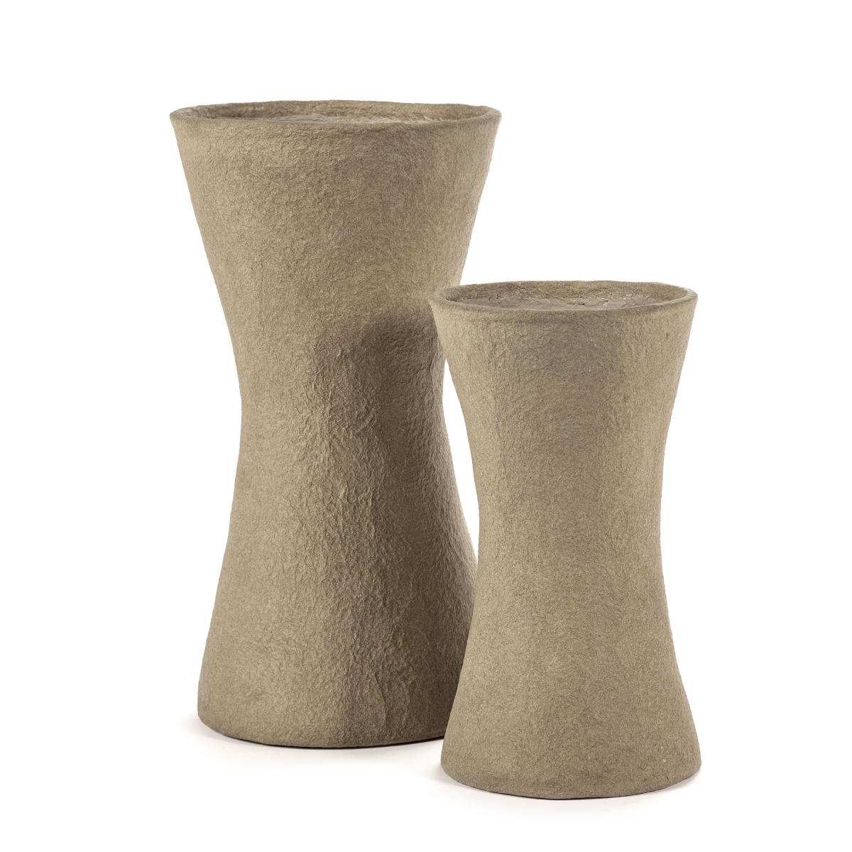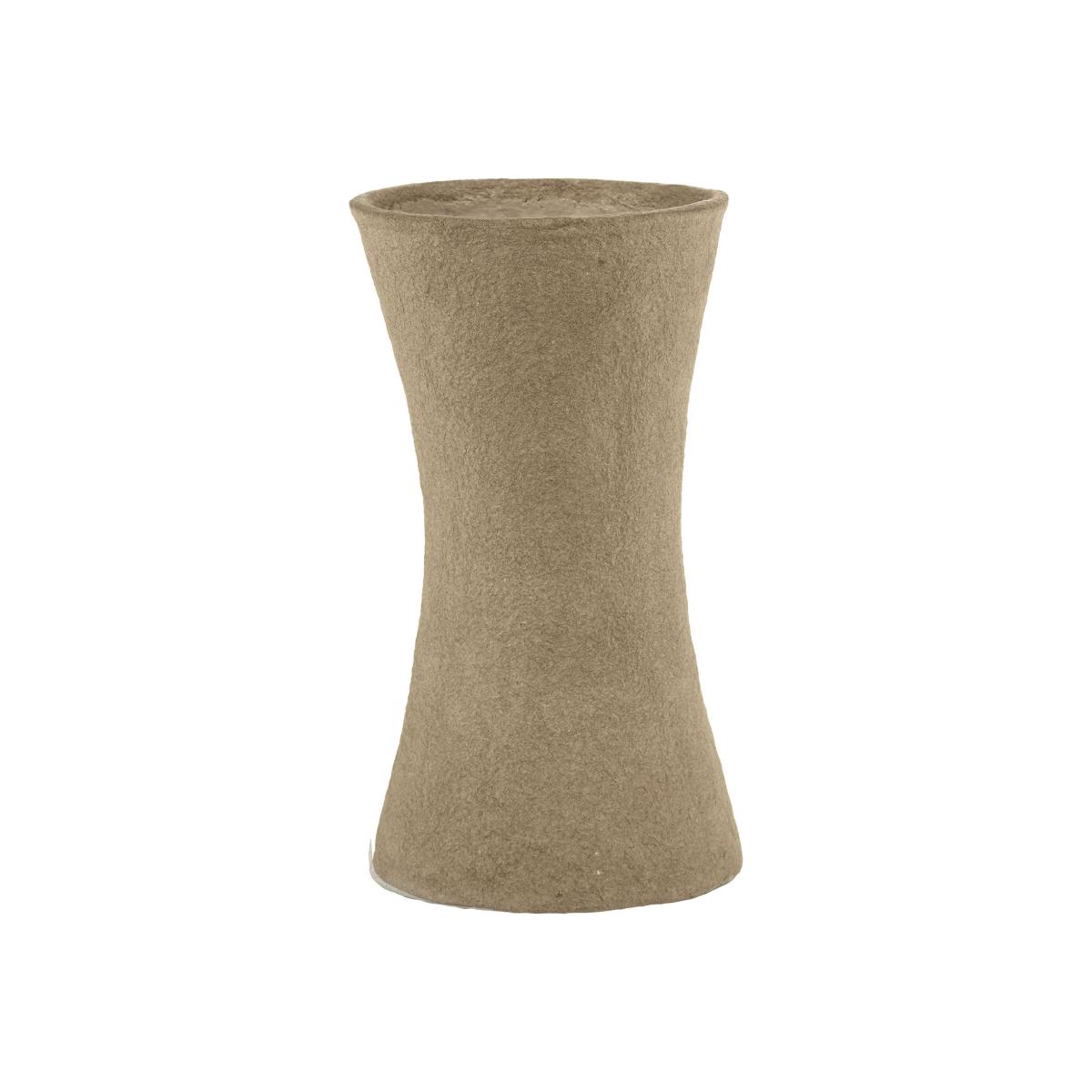An inordinate love for paper, as well as the desire to recycle materials, drove the Belgian artist, Marie Michielssen, to create a series of papier-mâché items. Adopting strange organic forms, the Earth dish is made from hand-modelled papier-mâché. This piece is halfway between art and design. The slightly irregular lines and bumps in the material are deliberately visible to communicate a hand-crafted feel and underline the object's raw attraction. The Earth collection showcases a primitive style that links past and present. The curved, soft lines break with our very strict, linear everyday environments. Marie Michielssen has a preference for materials that she can mould by hand. She allows herself to be guided by her intuition, to give shape to items with an atypical and poetic look. "With Earth collection, I feel that my formal language gets ever closer to sculpture. ", explains Michielssen. The designer never starts by throwing down ideas on paper. No technical drawings or 3D models on the computer: she prefers to let the material express itself during the creative process by shaping it by hand. During the modelling process, I often play with primary shapes like cones, spheres and squares. I bring them together to create new shapes. For each design, there's a preliminary in-depth study of the shapes - everything is incredibly intuitive." PLEASE NOTE. Decorative vase: do not place in contact with water. Can house dried or artificial flowers