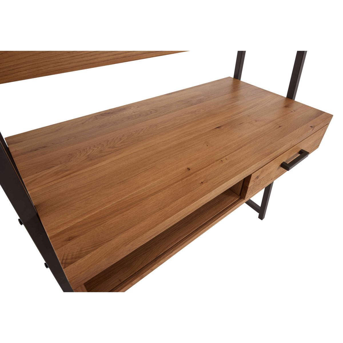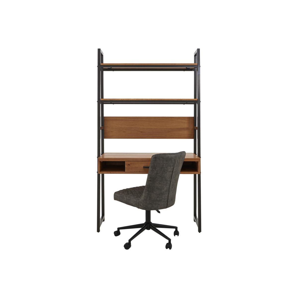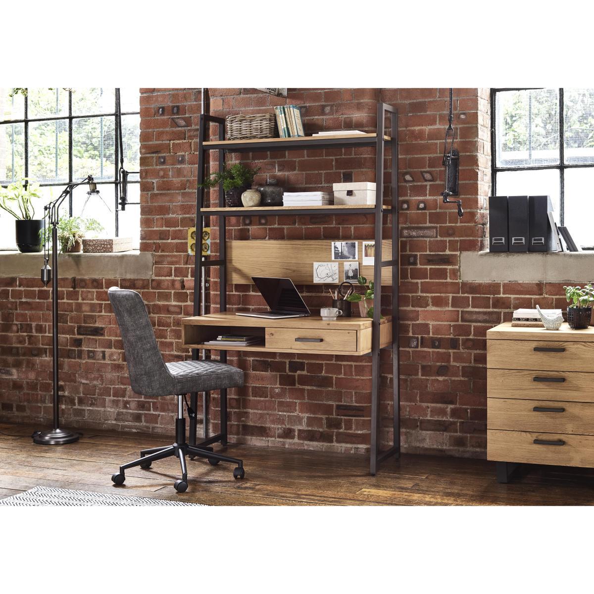 Think you don’t have room for a cool home office? Yes, you do. The Earth Office wall desk takes up hardly any room and offers a fabulous combo of work surface, shelves and storage. It comes with the cool swivelling Earth Office chair. Fantastic-value oak wall desk saves space and looks great. Cool modern industrial style. Solid oak with a smooth finish. Chunky grey metal frame and accents. Ergonomic and functional combination of desk, shelves, alcoves and drawer. Narrow profile and small footprint — an ideal choice for compact spaces. Desk chair is height adjustable, swivels and set on casters. Comfortably curved seat upholstered in grey faux leather. Upholstery is embellished with a quilted-effect pattern. Crafted from real oak, every piece in the Earth Office collection is unique. What you need to know. 2 deep shelves for books. Desk has 1 drawer and 2 alcoves. As oak is a natural material, knots and markings are to be expected. Avoid placing in direct sunlight, and protect the surface with coasters. Part of the well-crafted Earth Office collection of desks and home office storage. WARNING!. Furniture can tip over unexpectedly and cause injury. This item should be fixed to a wall using the anti-tip kit provided with the furniture. Be sure to use the correct wall fixings suitable for the walls in your home.