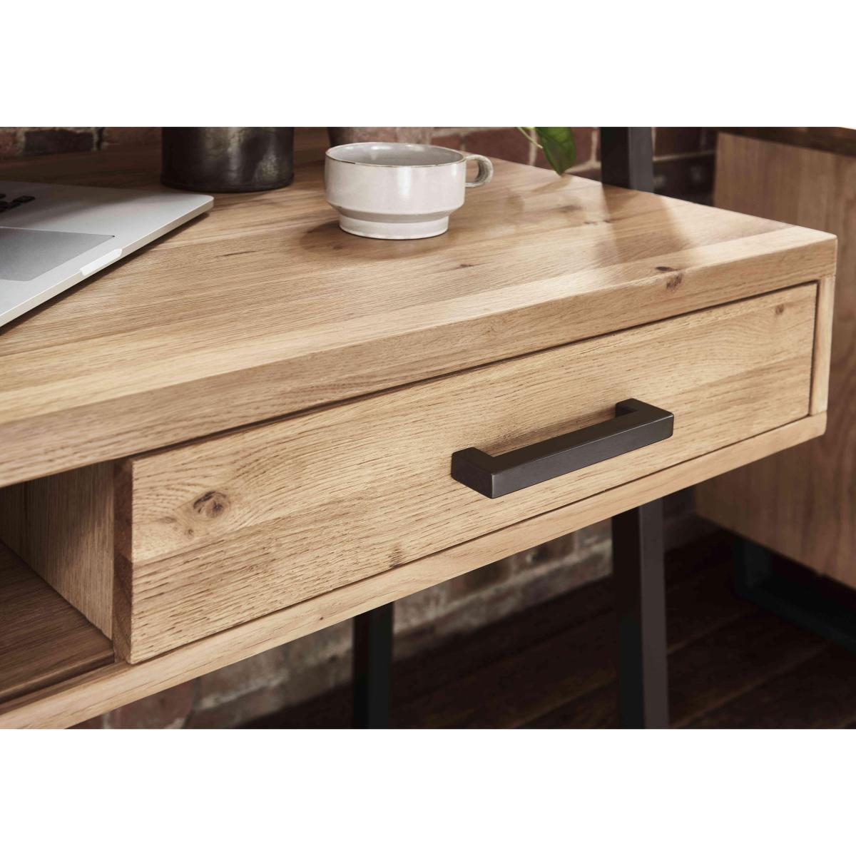 The ergonomic Earth wall desk is an all-in-one workspace that’s so incredibly functional and so very stylish. In cool industrial style it neatly combines desk, shelves and storage nooks. Made of solid wood and metal. Fantastic-value oak wall desk saves space and looks great. Cool modern industrial style. Solid oak with a smooth finish. Chunky grey metal frame and accents. Ergonomic and functional combination of desk, shelves, alcoves and drawer. Narrow profile and small footprint — an ideal choice for compact spaces. Crafted from real oak, every piece in the Earth Office collection is unique. What you need to know. 2 deep shelves for books. Desk has 1 drawer and 2 alcoves. As oak is a natural material, knots and markings are to be expected. Avoid placing in direct sunlight, and protect the surface with coasters. Part of the well-crafted Earth Office collection of desks and home office storage. WARNING!. Furniture can tip over unexpectedly and cause injury. This item should be fixed to a wall using the anti-tip kit provided with the furniture. Be sure to use the correct wall fixings suitable for the walls in your home.
