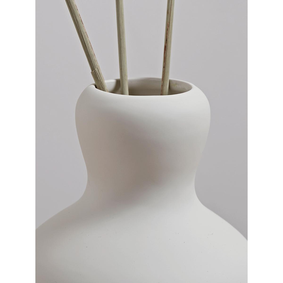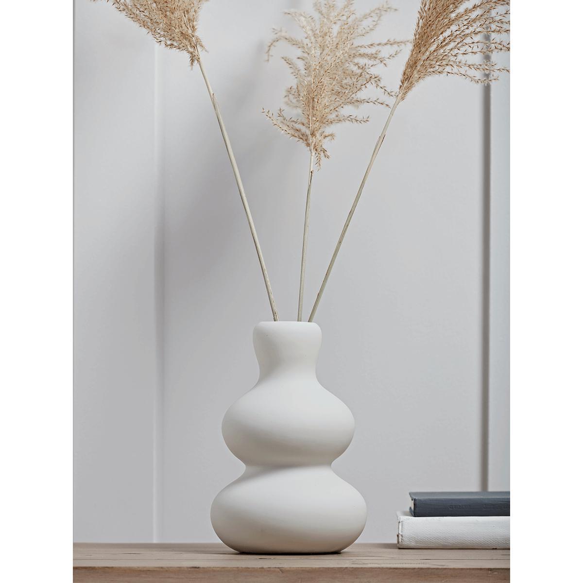 I love this vase for its understated elegance and versatile shape, which makes it a great focal point without overwhelming a space. The ripple design adds a subtle texture that works particularly well in minimalist or modern interiors, but can also soften a more eclectic scheme. It’s perfect for displaying dried grasses or a simple bouquet of seasonal flowers, and looks equally stylish when left empty - emphasising its sculptural form. For practical styling, consider placing it on a neutral sideboard or a console table to balance natural textures and colours, or use it as a standalone statement piece on a statement shelf. Its neutral white tone makes it adaptable to a colour palette, allowing it to blend seamlessly or stand out as needed.