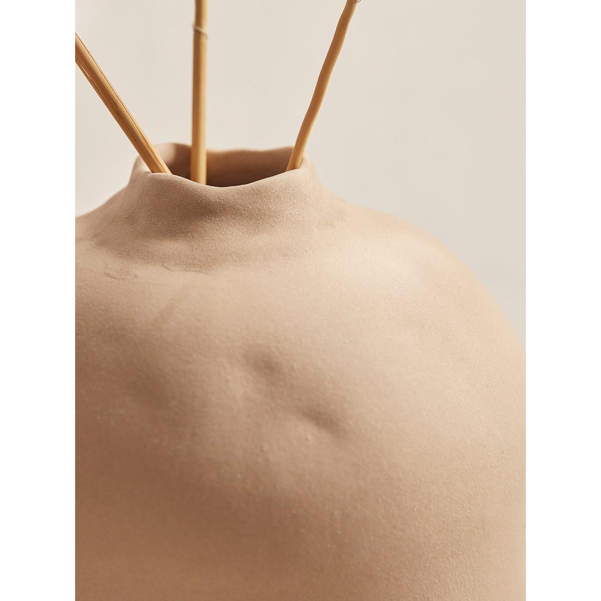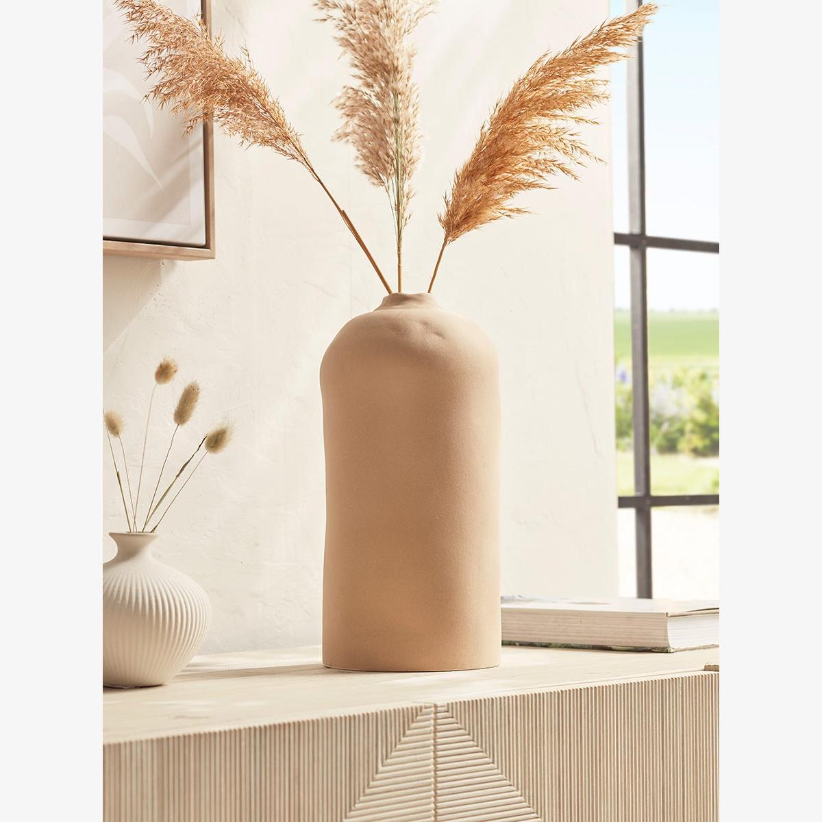 This earth-toned vase has a simple, understated silhouette that works well in a range of interiors, from minimalist to boho chic. I love pairing it with dried grasses or understated flowers for a natural, relaxed look, especially on sideboards or open shelving. Its neutral hue makes it versatile; it can sit confidently among contemporary furniture or complement more rustic, textures-heavy schemes. For practical styling tips, consider using it as a standalone piece for a clean aesthetic, or group it with smaller vases to create a layered display. Its size and shape lend themselves well to filling empty corners or acting as a centrepiece on tables, adding an earthy, organic touch without overwhelming the space.