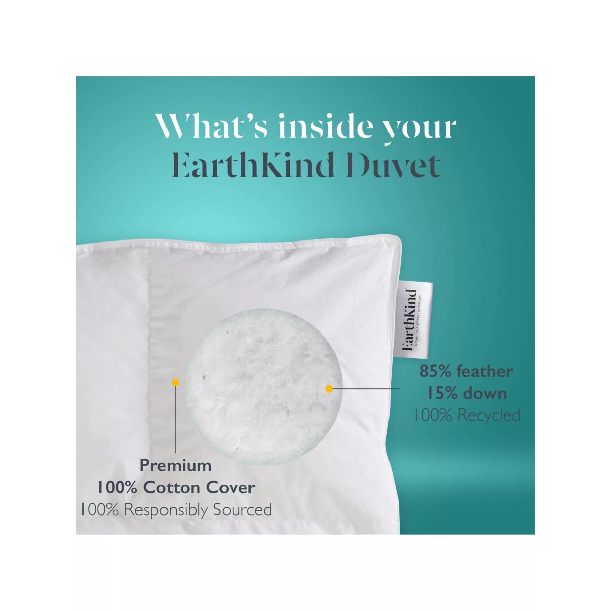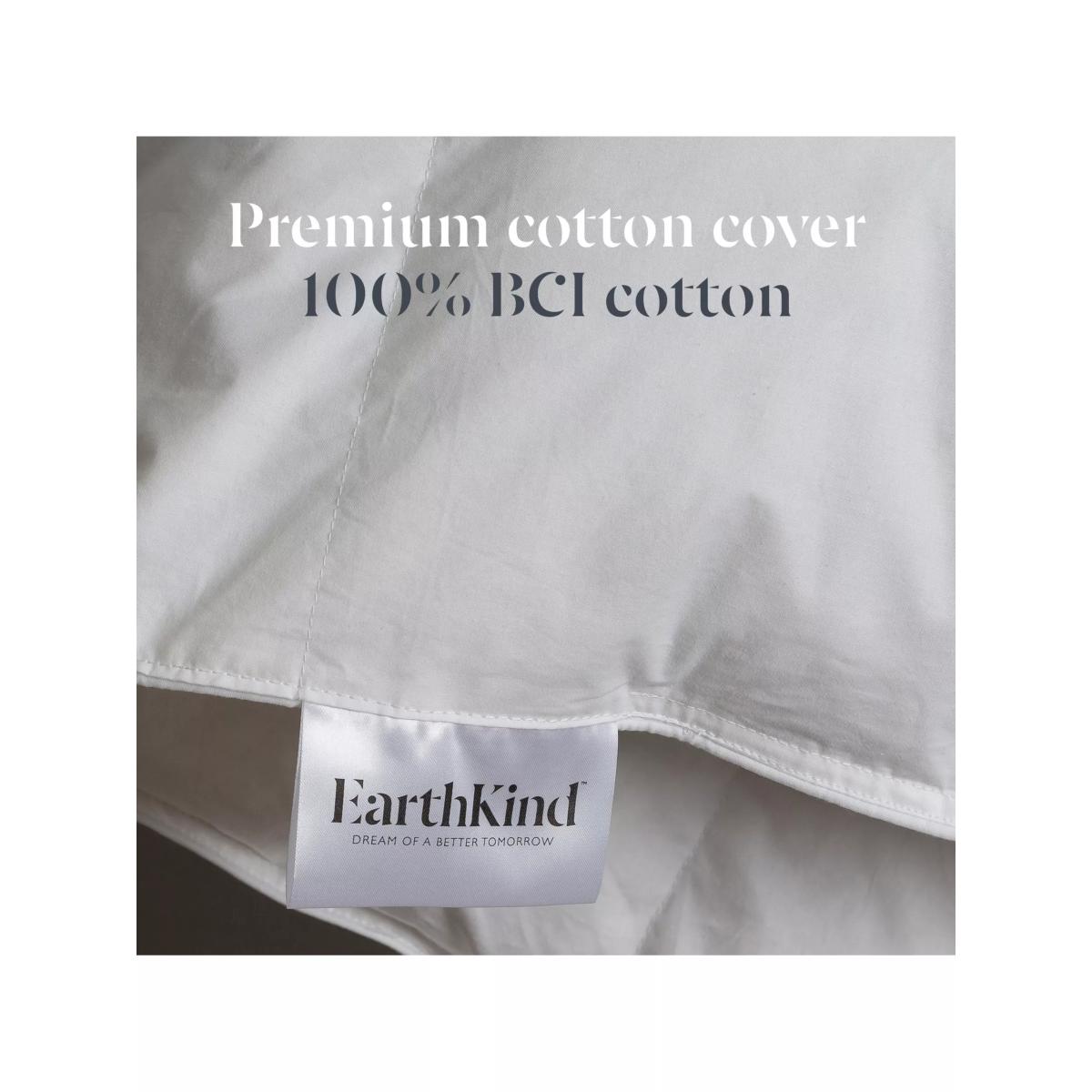 EarthKind collect & recycle feather & down to create all of our their natural duvets & pillows. Natural down & feathers look delicate but they are very durable and keep all of their original warmth and softness once recycled. EarthKind gently clean & sanitize them to make sure they're as good as new before before carefully sorting, blending and hand finishing the duvets with fabrics. All Earthkind duvets and pillows are made in the UK and they don't like packaging waste so there is no plastic and we've designed the bag so you can keep it and use it for something new. Better Cotton By choosing our cotton products, you’re supporting our investment in Better Cotton’s mission to help cotton communities survive and thrive while protecting and restoring the environment. Better Cotton Farmers are farmers who care for the environment and respect workers’ rights and wellbeing. This product is sourced via a system of mass balance and therefore may not contain Better Cotton. bettercotton.org/massbalance Made using recycled materials, helping us to reduce our impact on the planet. 60°C Washable at 60°C, for a hygienic clean that will kill dust mites. 233 Thread Count This number refers to the density of threads per square inch. Typically, the higher the thread count, the finer and smoother the fabric will be against the skin.