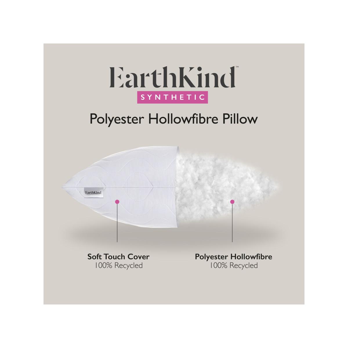 All of Earth. Kind's synthetic pillows are made from 100% recycled materials. Recycled polyester fibres are just as soft and as warm as non-recycled fibres. EarthKind are committed to sustainable production, reducing carbon footprint and zero waste to landfill. Earth. Kind's zero waste packaging is made with no plastic and is designed to be kept and used again. Made in the UK. Suitable for regular washing Washable at 40°C, allowing for an effective clean that's much kinder to the environment.