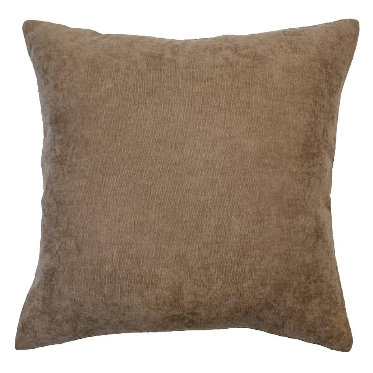 Double-faced with earthy colours. Use the speckled side for a touch of texture and turn it to the plain side when you want to pair it with other patterned or textured cushions. Provided with a UK-made feather-filling pad this cushion will add a touch of personality to your sofa, armchair and bed.
