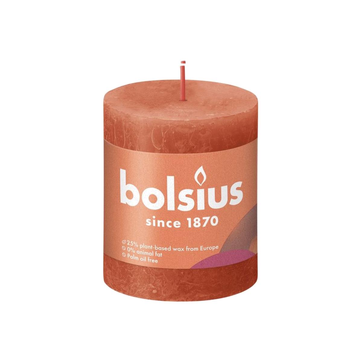 Make every moment a special one! The natural light of candles brings a unique warmth and ambience into your home and makes it cosy. Bolsius's rustic pillar candle coming in the orange tone Earthy Orange The mark of a quality candle is its long burning time and its ability to maintain its shape while burning. Bolsius's rustic candle doesn't smoke or drip and has a nice, rustic finish. Made with love for people and planet. With natural, vegan wax from Europe and zero palm oil. The cotton wick is weaved in such a way that your flame remains stable. In that way no black smoke, soot deposits or smoke arises whilst burning.