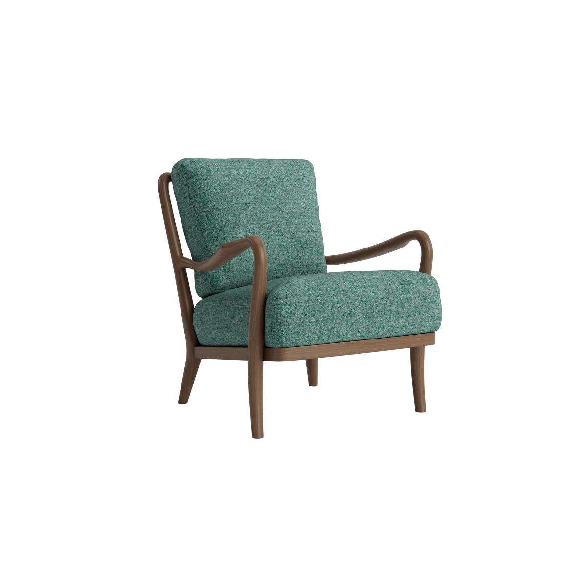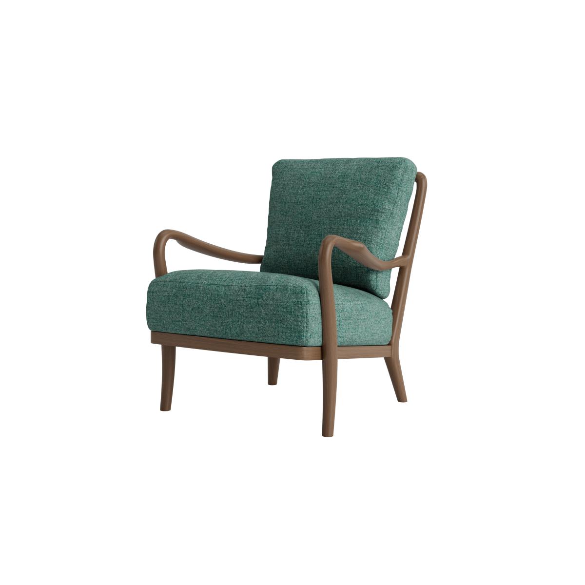 Our version of a mid-century design. Classy curved arms made from top-notch dark oak, comfy cushions and a back that's angled for taking things easy.