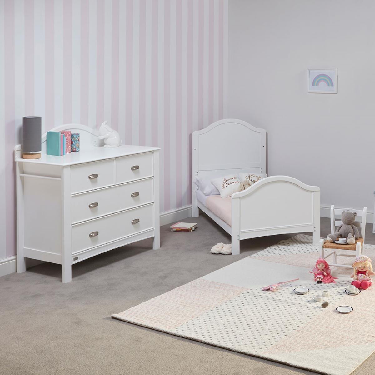 I love the East Coast Toulouse cot and chest set for its timeless, classic design that works well in both traditional and modern nursery interiors. Its clean white finish and gentle curves lend a fresh, calming feel, making it versatile enough to complement a variety of colour schemes and decor styles. Practical styling tips include pairing it with soft pastel textiles or bold accents for a personalised touch. The chest of drawers provides practical storage ideal for organizing essentials, while the cot's simple design makes it suitable for a nursery that can evolve with your child. Overall, it’s a smart, stylish choice for creating a serene and functional space.