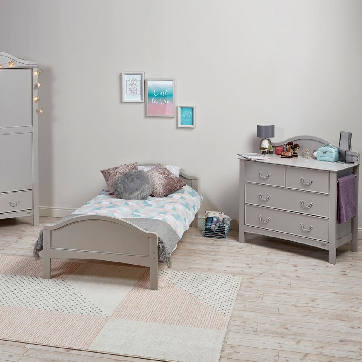 Moving from toddler bed to single bed can be a little daunting. But when your bed is this gorgeous, your little one's won't mind one bit! Create a soothing space for sleeping with the East Coast Toulouse Single Bed. Delicately styled with traditional details and finished in French Grey, it's the perfect spot for reading and resting. Pair with soft pastel bedding, decor and a set of string lights and they'll be nodding off in no time! And with space under the bed, add a few storage boxes to keep shoes, toys and extra bedding neat and tidy! Pair with the Toulouse 3 Drawer Dresser and Double Wardrobe to complete the look! You're going to need all the storage you can get!.